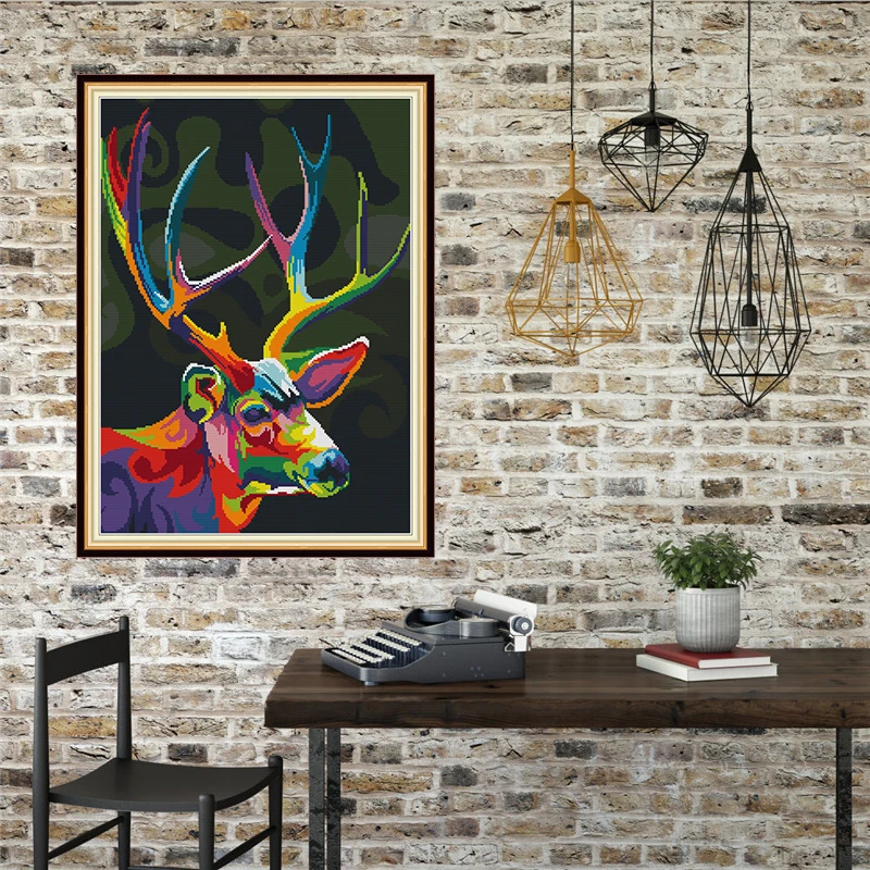 Набор для вышивки крестиком сделай сам, цветные узоры в виде оленя, хлопковая нить DMC, домашний декор, подарок