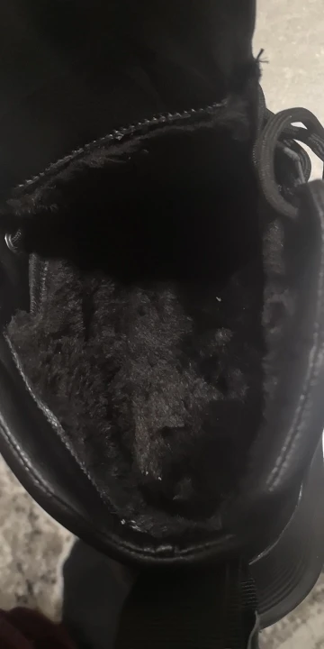 Ношу 45 размер, заказал 46. Подошли отлично. Внутри есть мягкий мех, ношу уже почти месяц, в комки не скатывается. Сейчас - 20,в них чутка холодновато, но с шерстяными носками было бы норм. Выглядят достойно. Кожа мягкая и очень приятная но ощупь. За свои деньги--прекрасная обувь. Не промокает. Подошва держит, конечно не бутсы с шипами, но и шанс словить на ебок этой зимой не так велик, как с кроссовками air force, что я носил в прошлом году. Работаю на стройке и ношу их исключительно на работу. Объясню за свой выбор: 1.Очень легко чистить. Провел мокрой тряпкой-готово. Что позволяет не переобуваться на работе в 20градусный мороз в свои кросы, которые за день превращались в кусок льда. 2.Не промокает и более - менее тёплые. (я брал утепленную версию). 3. Высокие кроссовки, и есть возможность хорошо из зашнуроваться, чтобы не черпать снег. Также высокая Подошва, которая спасла разок от торчащего гвоздя. P. S. Сзади есть висюлька, которая немного раздражает.