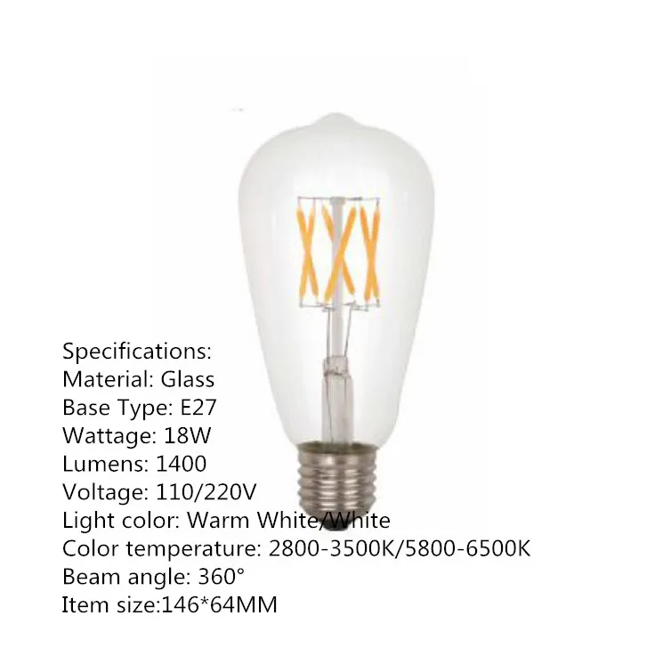 Новый светодиодный светильник E27 ST64 3 Вт 6 Вт 9 Вт 12 Вт 15 Вт 18 Вт 21 Вт, старинный светодиодный светильник Эдисона