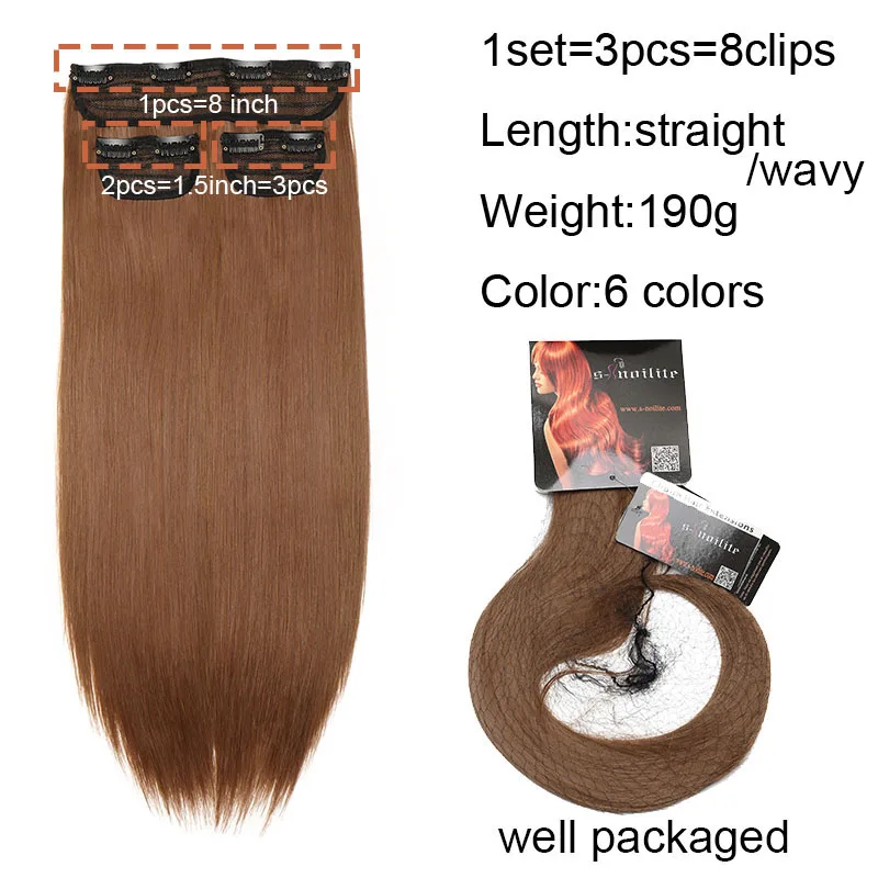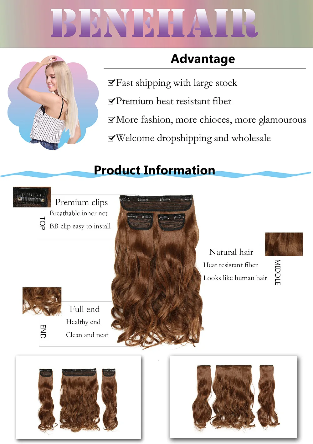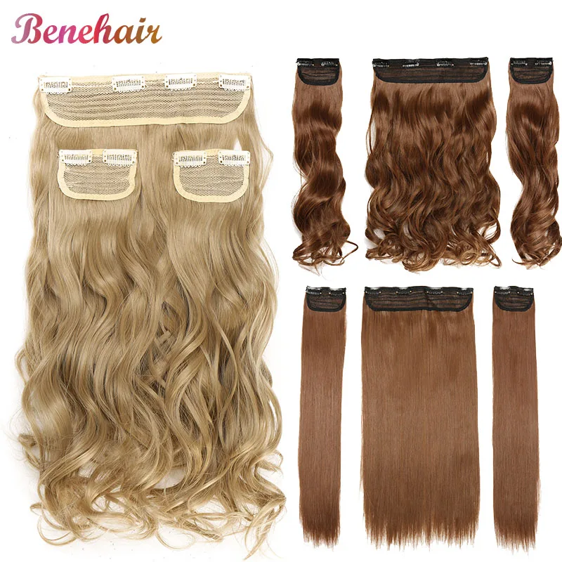 Накладные волосы на клипсе BENEHAIR, длинные прямые синтетические волосы, 3 шт., накладные волосы на клипсе для женщин, термостойкие волосы