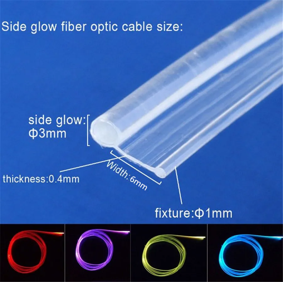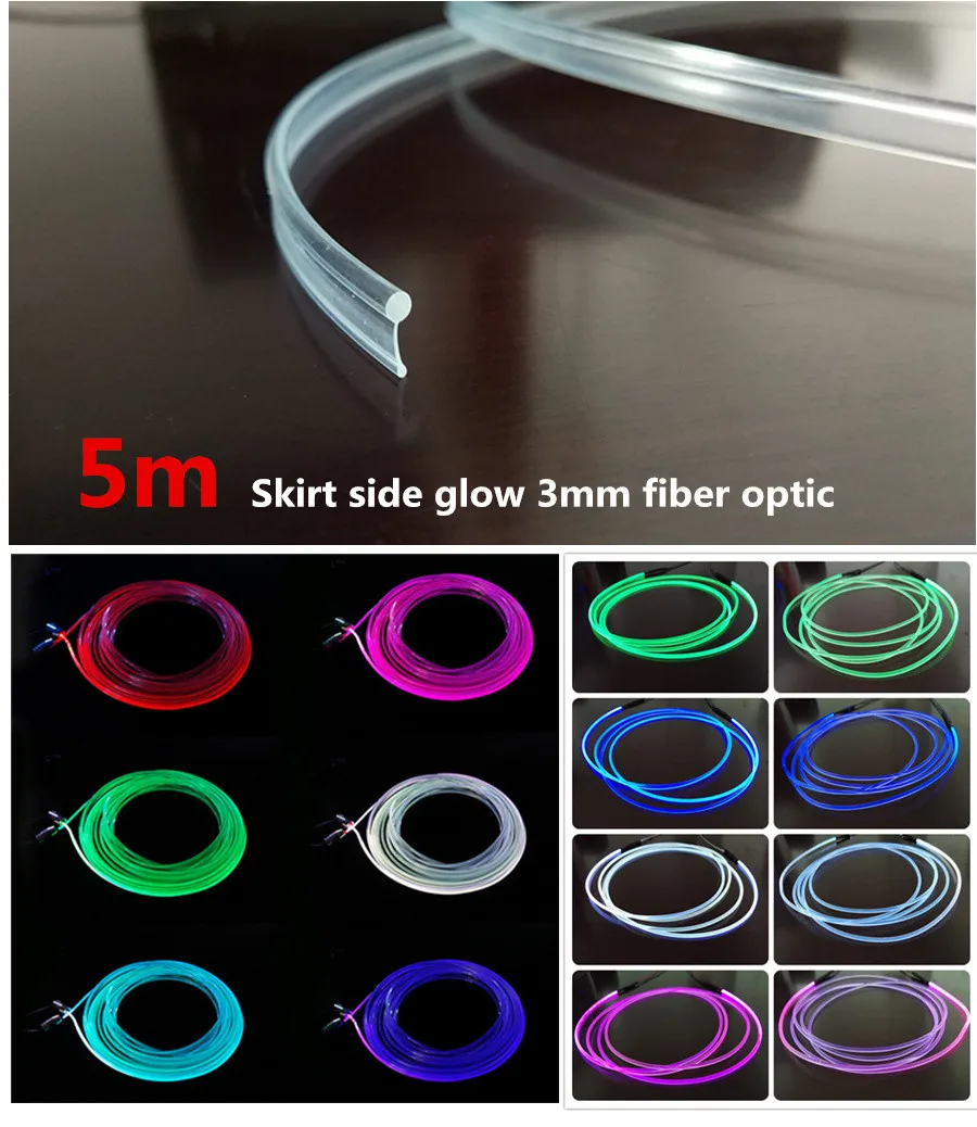 5 метров 3,0 мм Юбка Сторона Свечение Волоконно-оптический кабель светильник