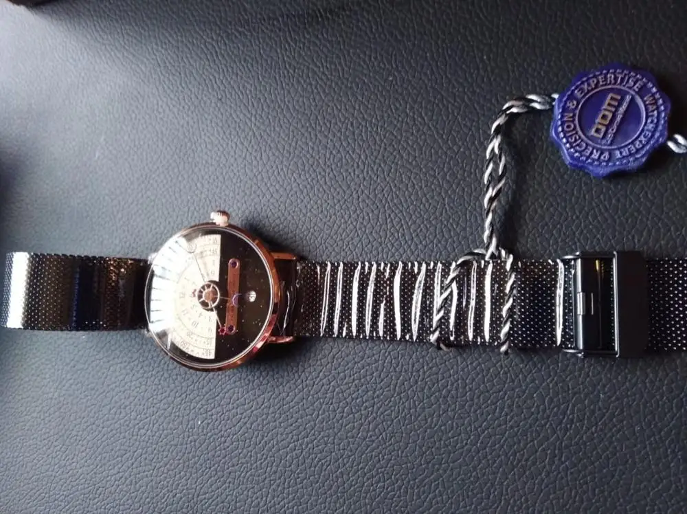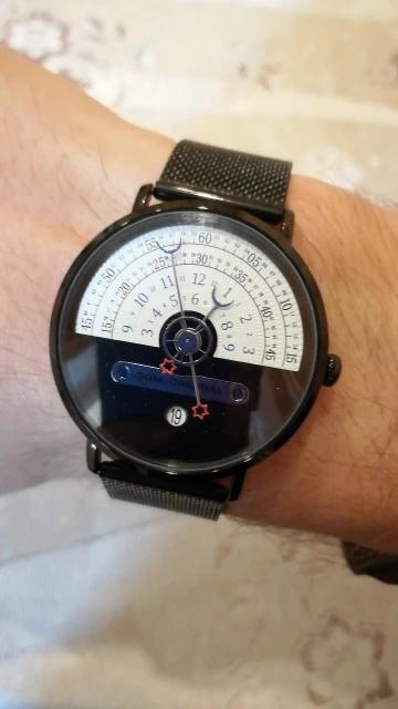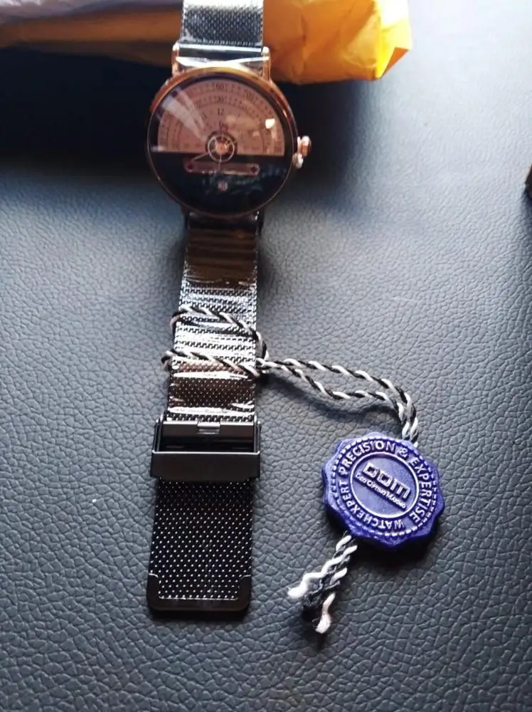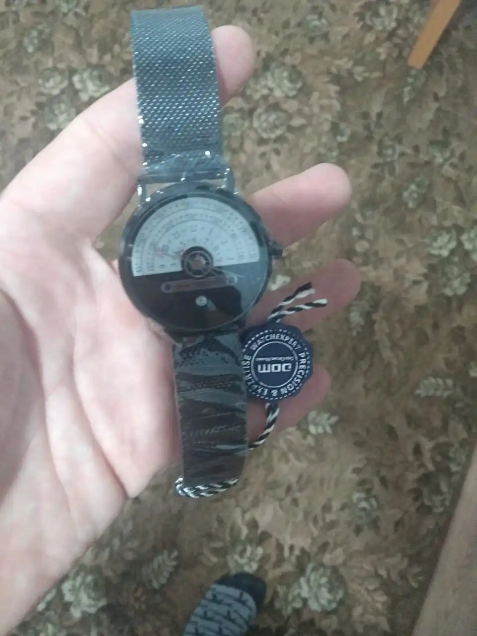 Доставка была быстрая, упаковка аккуратная и включала фирменную коробочку. Часы вполне можно брать на презент. Ремешок очень удобный - плетеный. Ни за что не цепляется. Циферблат очень интересный. Он поделен пополам - верхняя часть непосредственно с минутами и часами, в на нижней части отображена дата. Как пользоваться часами и считывать время показано на странице продавца. На самом деле это всё очень просто, нужно только привыкнуть. Часики стильные! Смотрятся прекрасно. Тикают тихо. Я приобретением очень довольна.