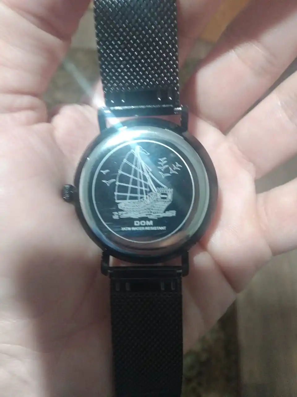 Бренд: DOM-Дисплей: аналоговые кварцевые часы-Стиль: Модный, Повседневный, роскошный, простой-Особенности: Водонепроницаемость Основная особенность:-100% новый с биркой и высокого качества;-Водонепроницаемость 3 АТМ/30 м (поддержка холодного душа и плавания, не использовать часы под водой, не поддерживает горячую воду);-Качественный чехол из цинкового сплава;-Качественный ремешок из нержавеющей стали; Приближение спецификации:-Диаметр чехла: 4 см-Толщина чехла: 1,15 см-Ширина ремешка: 2 см-Общая длина: 21,2 см Посылка-1 часы DOM-1 коробка DOM