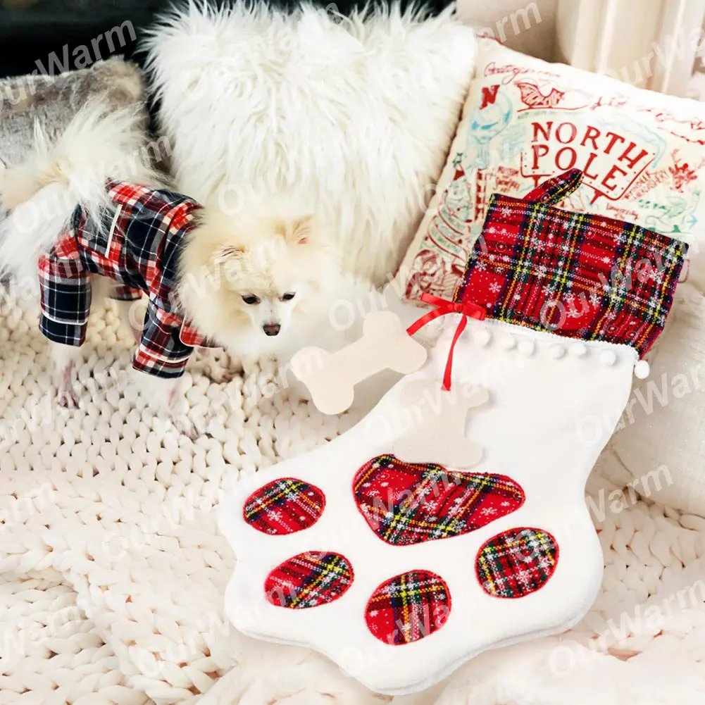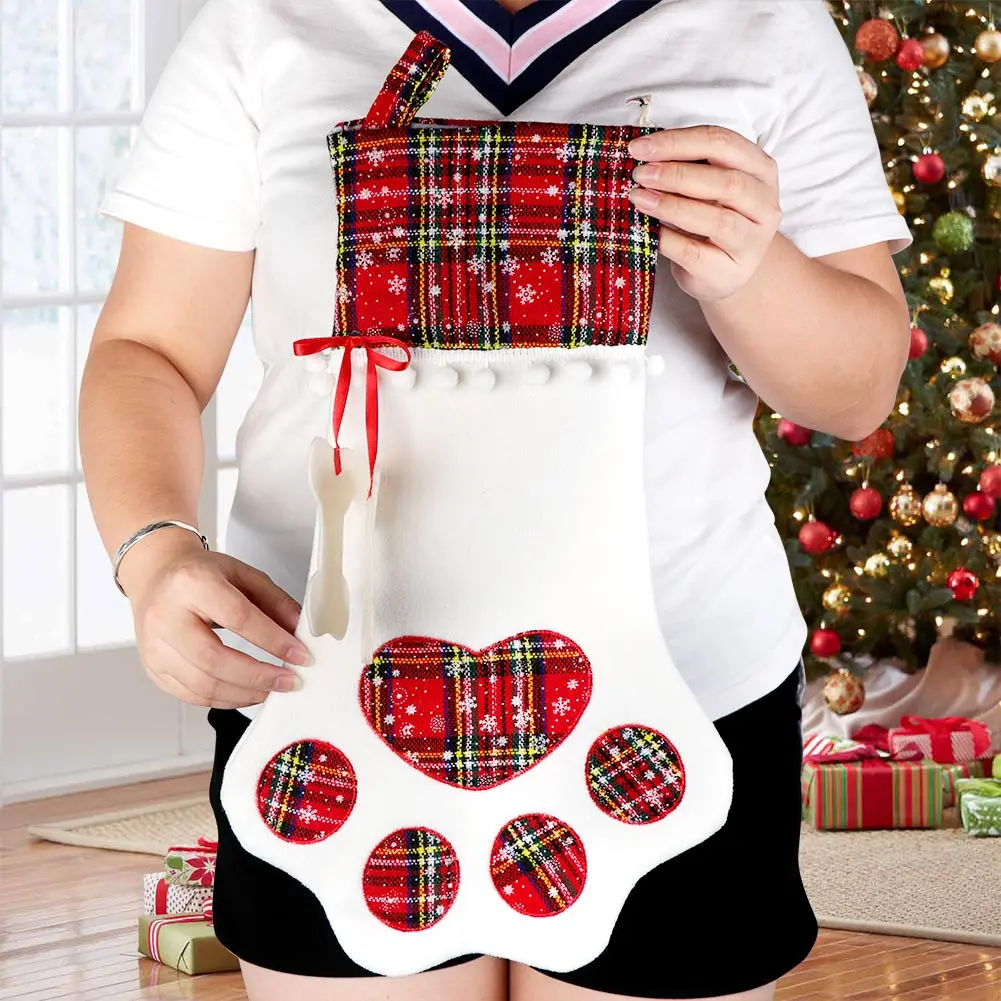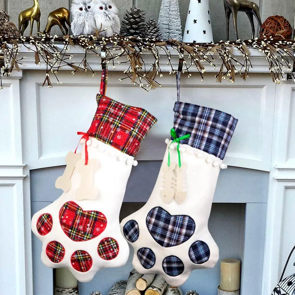 Рождественский чулок 18 х11 дюймов в клетку, подвесной Рождественский чулок в виде щенка буйвола с большой лапой для рождественских украшений