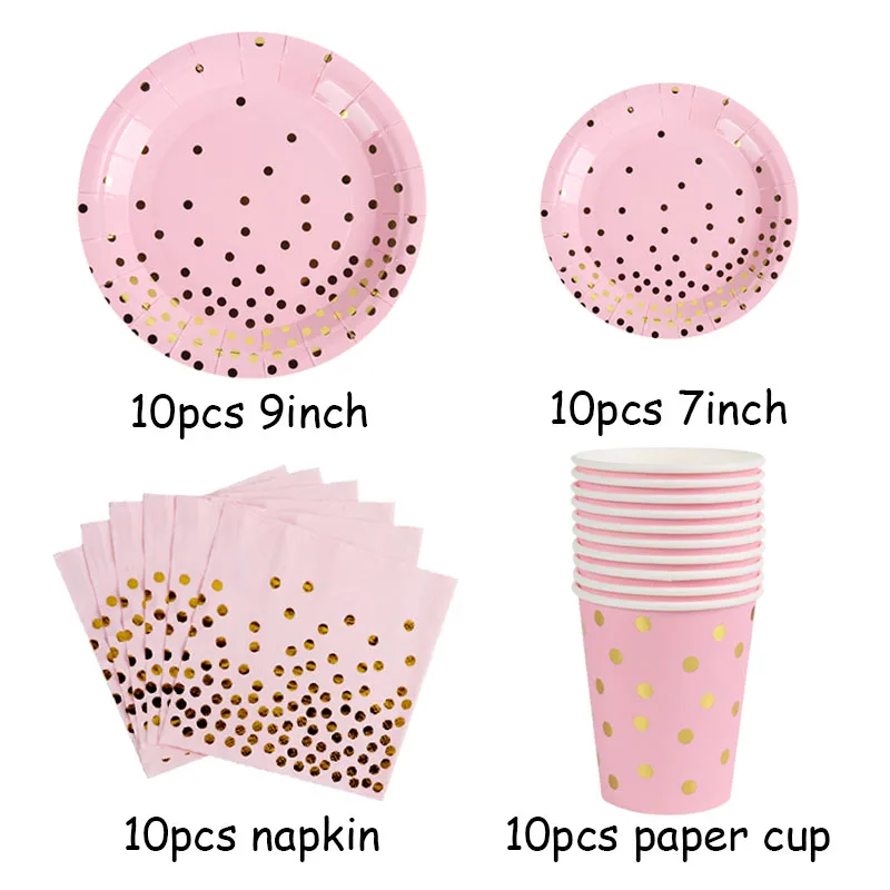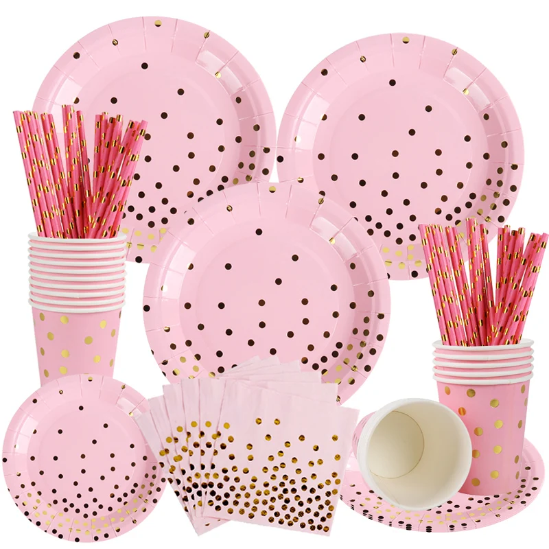 Розовая, Золотая точка, одноразовая посуда, украшения для вечерние, женский день рождения, украшения для вечеринки, товары