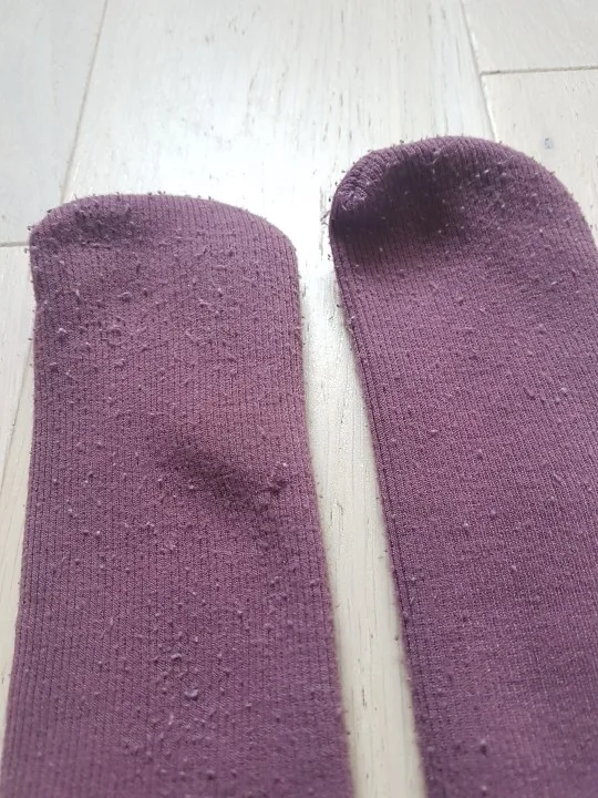 Мягкие теплые носочки с плюшем внутри. Хотя у них не обозначены пятки, все равно носочки хорошо сидят на ножках, не слезают за счет вязки резинкой. Цвет совпадает. Катышки появились в конце первого дня нóски без тапок - покупайте вместе с носками машинку от катышков)) она всё удалит. На первом фото лицевая сторона и изнанка. На втором - те самые катышки после 1 дня носки+ одной стирки.