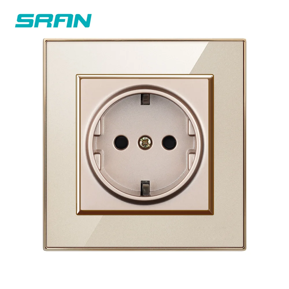 Европейская розетка SRAN, 16 А, 250 В, белаячерная акриловая панель, 86 мм * 86 мм с посеребренными краями, настенная розетка