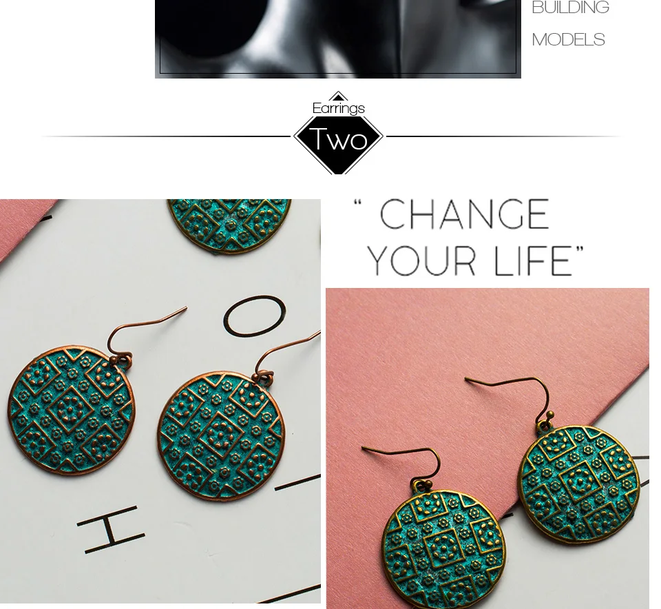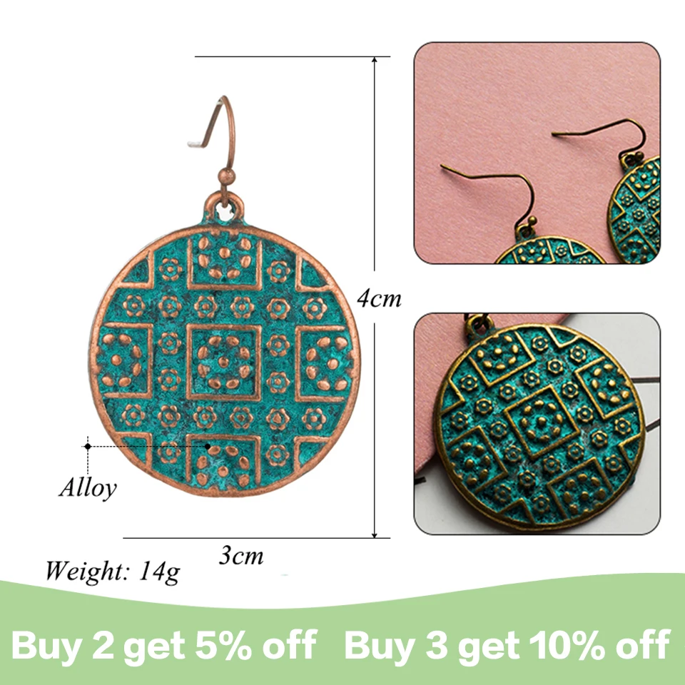 Винтажные этнические большие круглые бронзовые висячие серьги-подвески для женщин, женские Украшения для ушей, свадебные аксессуары, ювелирные изделия
