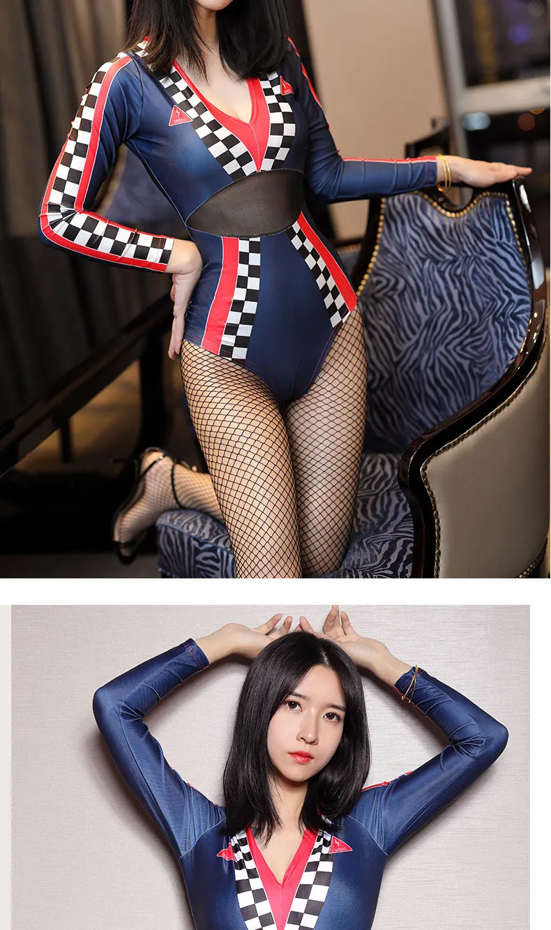 Женское Эротическое нижнее белье, комбинезон для гонок и Косплея