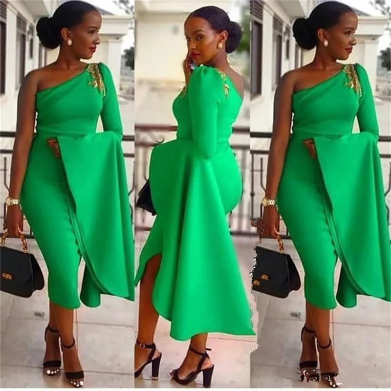 Зеленые южноафриканские короткие платья-русалки для выпускного вечера, Коктейльная одежда для женщин, недорогие официальные платья длиной ea на одно плечо