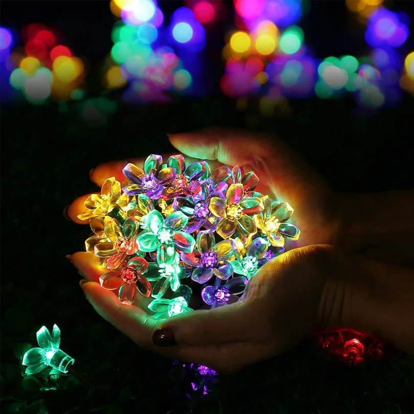 Светодиодная Водонепроницаемая гирлянда на солнечной батарее, декоративный шнурок с цветами вишни для свадьбы, газона, сада, патио, рождественской елки