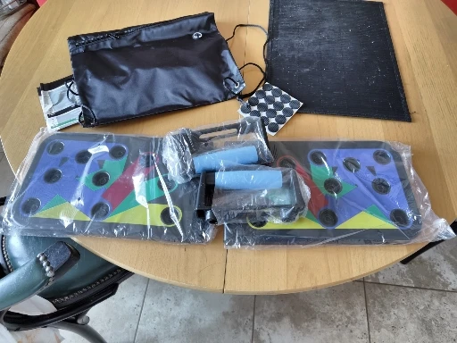 Соответствует описанию. Крепятся между собой доски достаточно крепко, пластик хороший, под весом никак не сломается, ручки не болтаются после установки. В комплекте есть резинки для наклеивания на доску снизу. В комплекте есть сумка для переноски, очень даже отличная, носится как портфель, или на плечо. На фото забыл запечатлить( Matches the description. The boards are fastened together quite tightly, the plastic is good, it will not break under the weight, the handles do not dangle after installation. The set includes rubber bands for sticking to the board from below. The set includes a carrying bag, very excellent, worn as a briefcase, or on the shoulder. I forgot to capture in the photo (