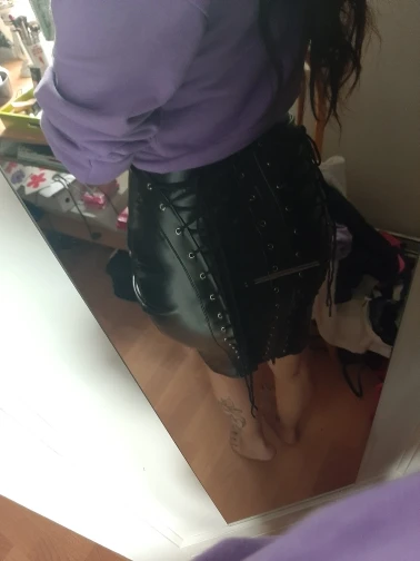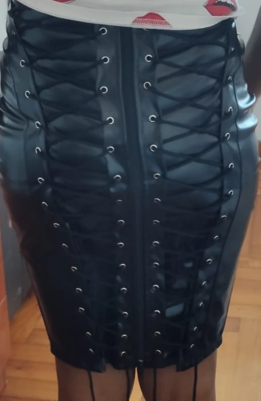 Юбка близка к фотографии. Фотография, которую они разместили, не является продуктом, который был отправлен. Кружево, которое у меня есть,-это веревки, и в списке картин, что они больше, чем кожа. Рубашка также из более спандекса, и я получил более блестящий кожаный материал.