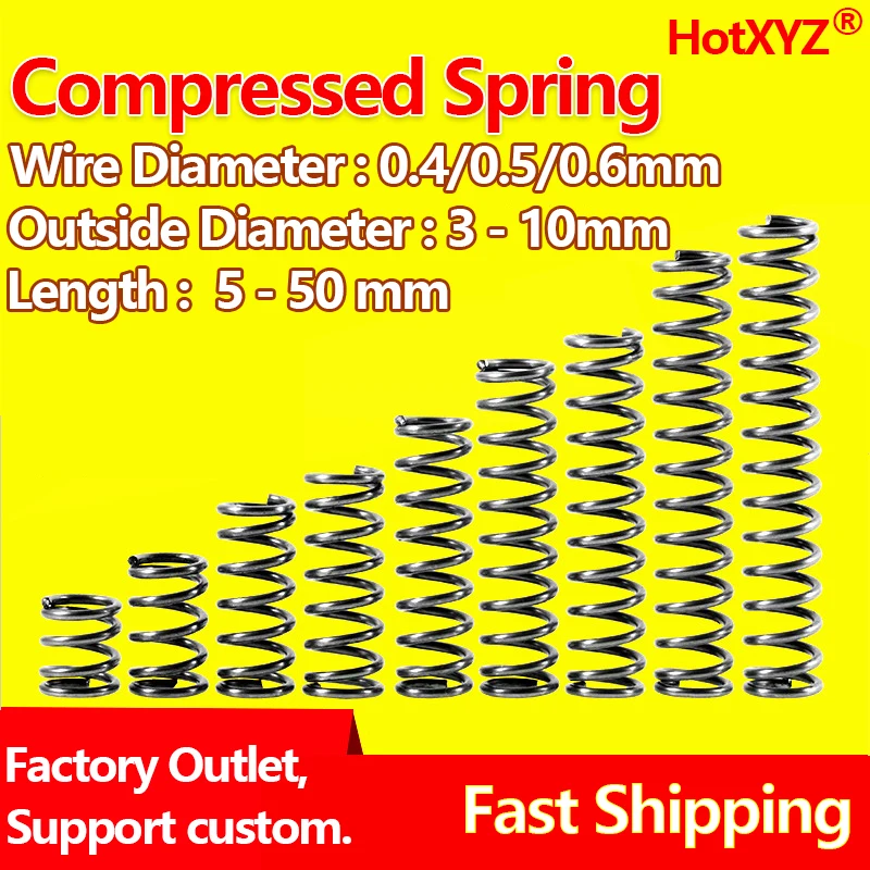 Цилидрическая пружина компрессора HotXYZ 65Mn, обратное давление, сжатый маленький стальной провод, диаметр 0,4, 0,5, 0,6 мм