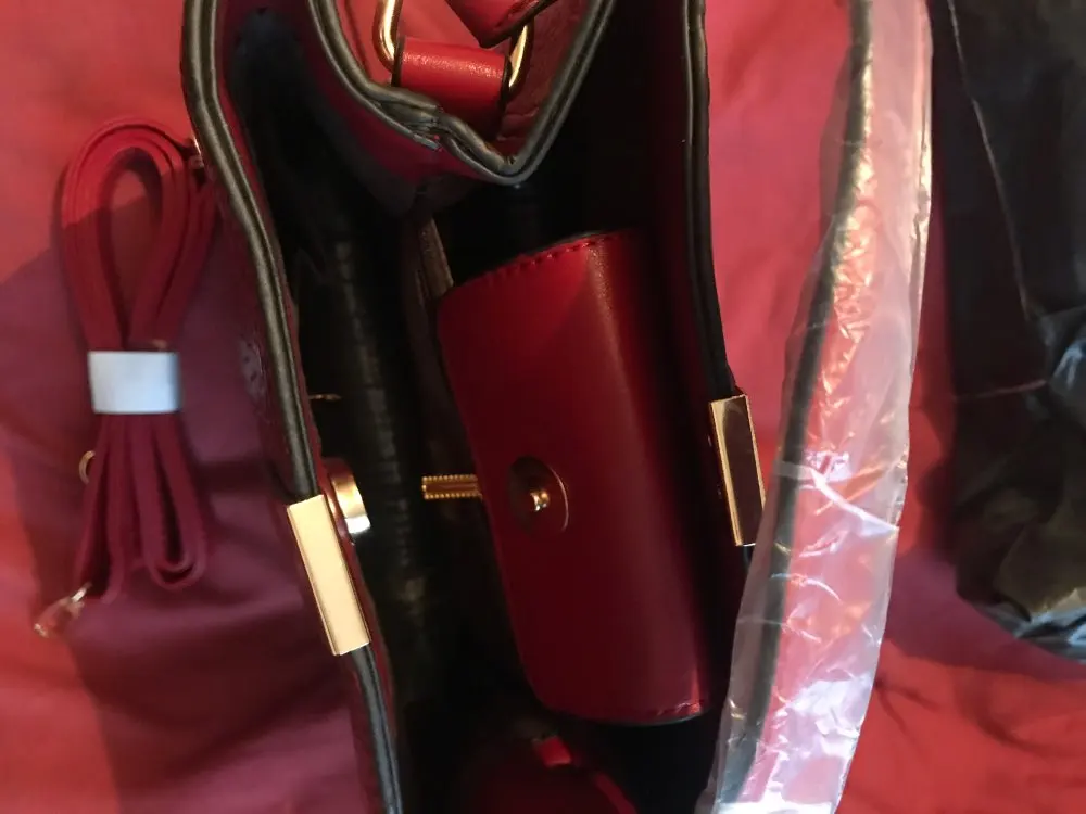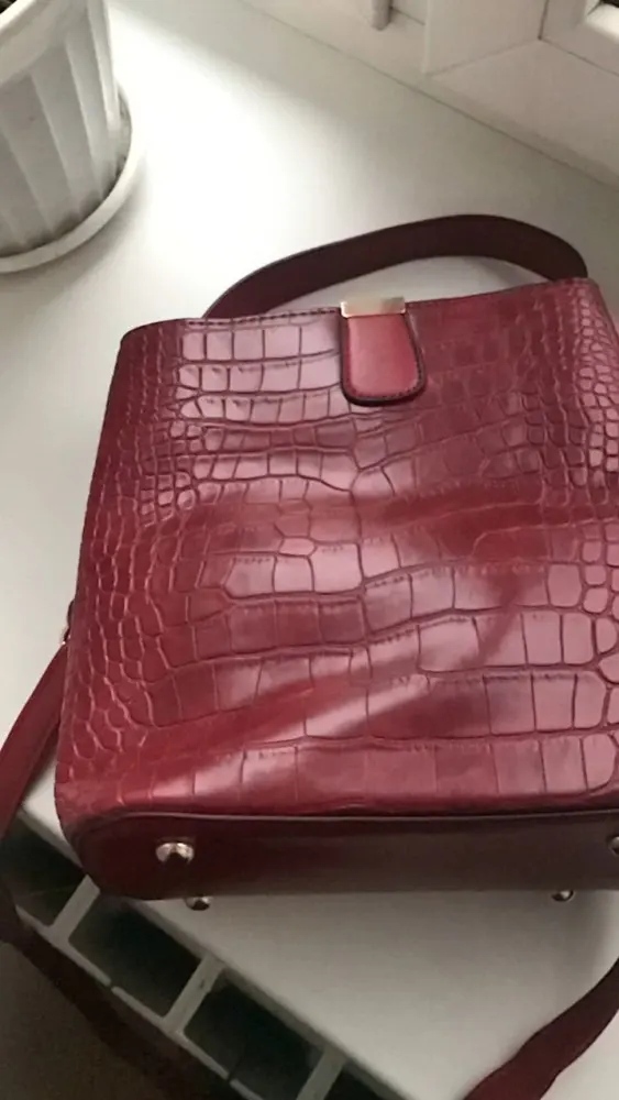 Сумка красного цвета очень красивая! Пришла в идеальном состоянии, прекрасно держит форму! Мне безумно понравилась, есть резкий запах, но он выветрится