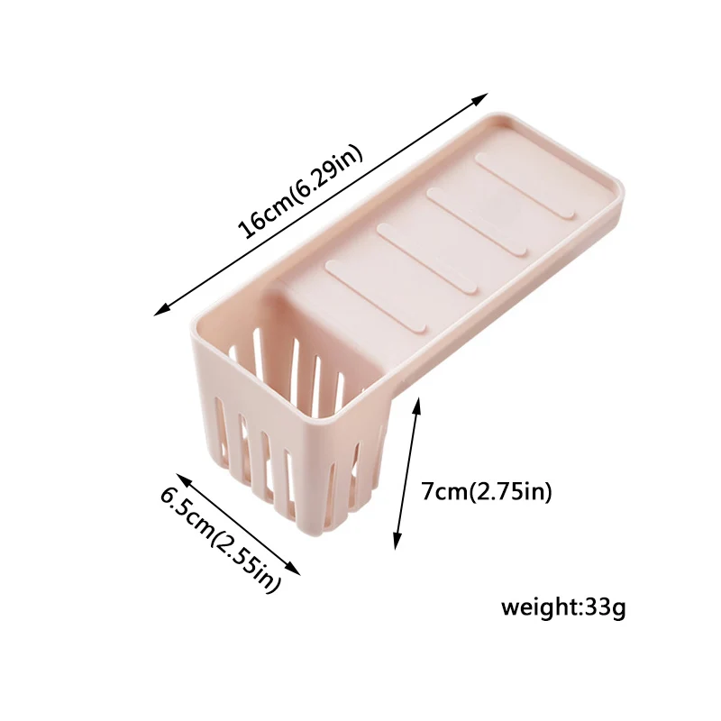 Характеристики: Использование: кухня, туалет, ванная комната Материал: АБС-пластик + присоска из ПВХ Размер: как на картинке Цвет: белый, розовый, синий Посылка включает в себя: 1 * стеллаж для хранения кухонной раковины