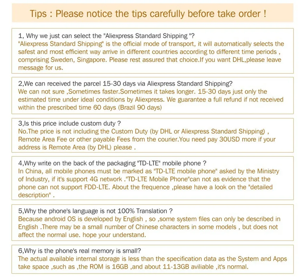 Внимание: обратите внимание, что цена в нашем магазине не включает в себя Таможенный налог в вашей стране --- Honor Play3 Три послесъемки: -- 48 миллионов + 8 миллионов + 2 миллиона пикселей, диафрагма F1.8 + F2.4 + F2.4, поддержка автофокуса AI Фронтальная камера --- 8 миллионов пикселей, диафрагма F2.0, поддержка фиксированного фокусного расстояния Батарея: --- 4000 мАч (стандартный); 3900 мАч (минимум) Дисплей --- 6,39 дюймов IPS 1560*720 пикселей Расширение памяти: --- Максимальная поддержка расширения 512 Гб MicroSD ЦП: --- HUAWEI Kirin 710F восемь ядер/Mali G51-MP4/GPU TURBO 3,0 Слот для SIM-карты: --- Двойная резервная нано-карта ОС: --- Android P EMUI 9.1.1 Другие: --- Поддержка Радио Протокол WLAN 802,11 b/g/n Частота WLAN 2,4 ГГц Многоэкранная Интерактивная поддержка Bluetooth 5,0 Внутреннее голосовое решение 4G: VoLTE/CSFB/SRLTE; Роуминг: VoLTE/CSFB/SRLTE Разблокировка лица Сеть: FDD-LTE:B1/B3/B5/B7/B8 TDD-LTE:B38/B39/B40/B41 UMTS(WCDMA):B1/B5/B8 TD-SCDMA:B34/B39 CDMA:BC0(800 МГц) GSM:B2/B3/B5/B8 Обратите внимание, что этот телефон поддерживает несколько языков, и мы устанавливаем магазин google play на телефон перед отправкой, Но после сброса телефона до заводских настроек магазин google play может потеряться, И если вы установите язык на свой собственный язык, в телефоне могут быть некоторые китайские слова и китайские иероглифы. Обратите внимание на это, и мы не принимаем спор из-за этого.