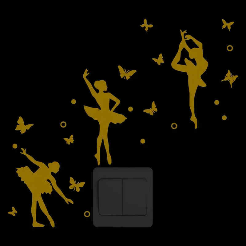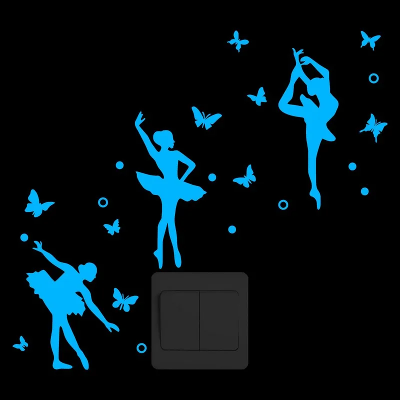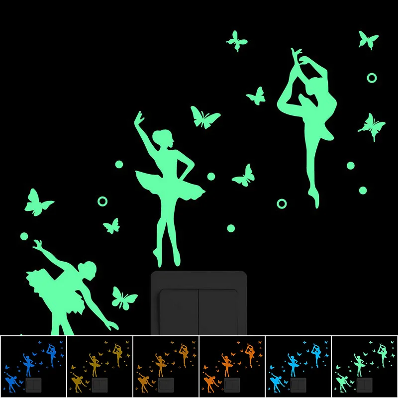 Балетная танцовщица с бабочкой и круглыми светящимися наклейками на стену, художественные украшения для гостиной, спальни, сделай сам, светящиеся наклейки с переключателем