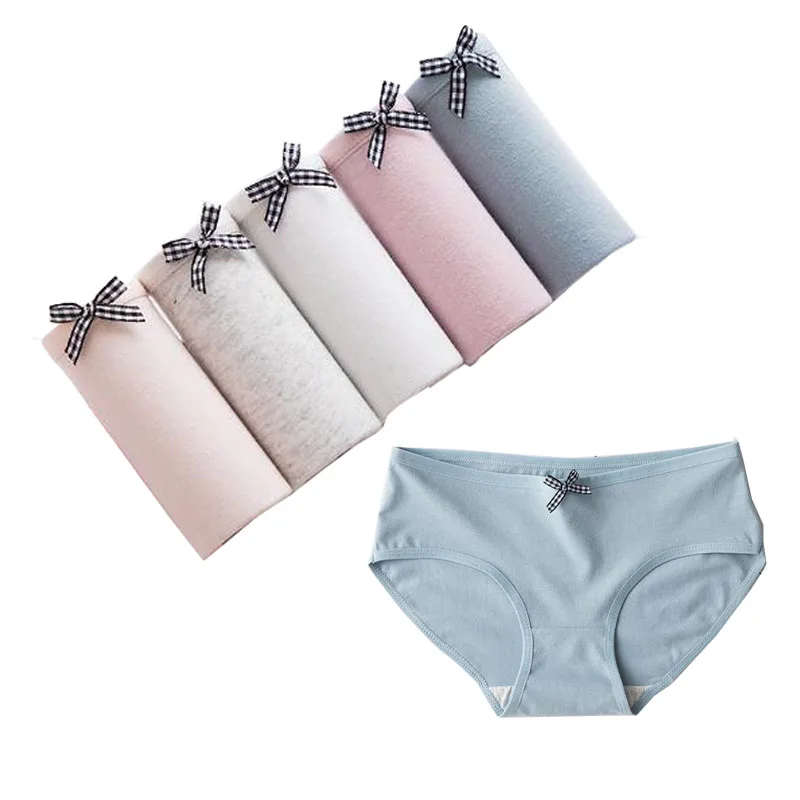 Трусы женские хлопковые однотонные с бантом, 10 шт.лот, M-XXL