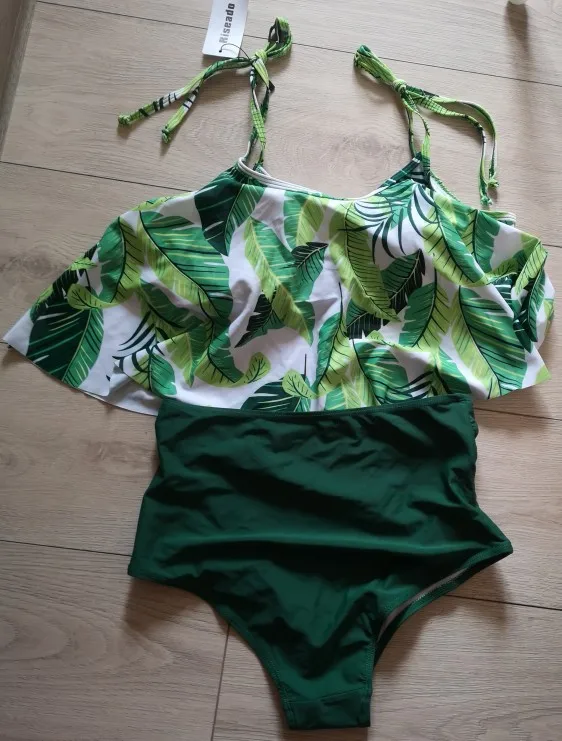 Riseado Высокая талия Купальник женский бикини 2022 купальник с принтом листьев купальные костюмы с рюшами Тропическое бикини пляжная одежда размера плюс XXL