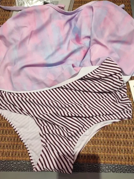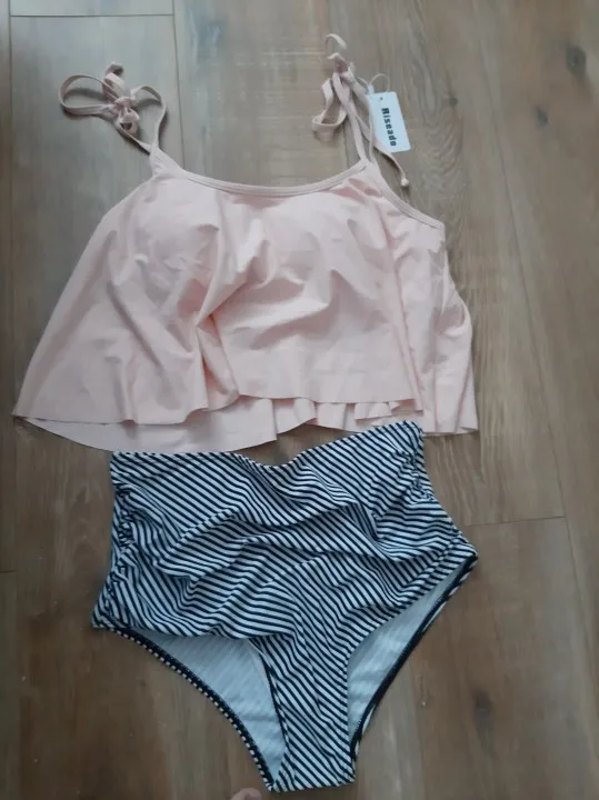 Указанный размер является точным и красивым бикини. Скрывает весь живот из-за высокой талии внизу.