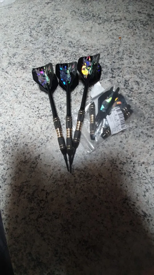 Хотелось бы поставить пять звёзд продавцу, и отправил быстро, и дошло за 10 дней, и сделаны качественно, но есть "ложка дектя" - толщина наконечников. Я не нашел нигде в интернете, что толщина наконечников может быть разная, однако у этих толщина (диаметр) меньше и из-за этого они в мишени не держатся!!! Поставил штатные наконечники из комплекта дартс (на фото белый) - всё стало как надо. Визуально это особо и не видно. У другого продавца брал так же комплект, та же проблема. Буду теперь подбирать и заказывать новые наконечники. Делаю также фото своего Дартс.
