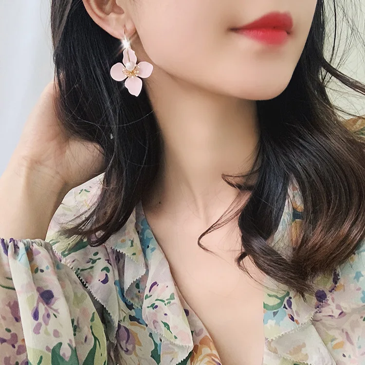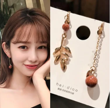 Серьги-гвоздики ручной работы, корейский стиль, с Красной кисточкой и кристаллами