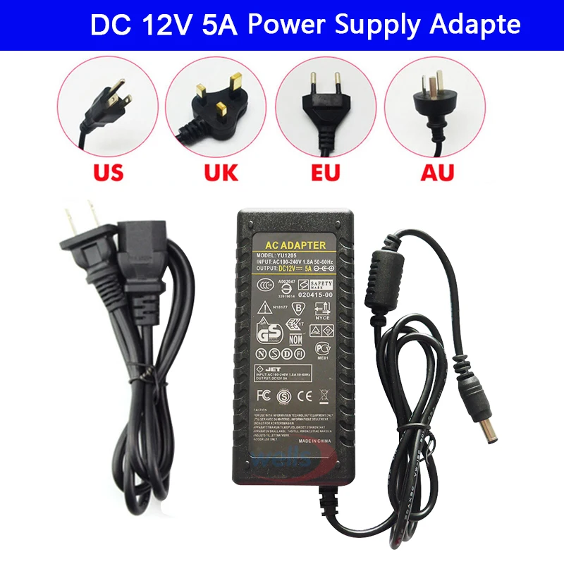 DC 12 V 5A светодиодный адаптер питания AC 100-240V to DC 12 V зарядное устройство адаптер 220 V 12 V конвертер светодиодная ленсветильник трансформатор