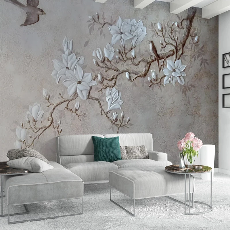 3D обои на заказ, стереоскопические тисненые цветы, настенная живоп...