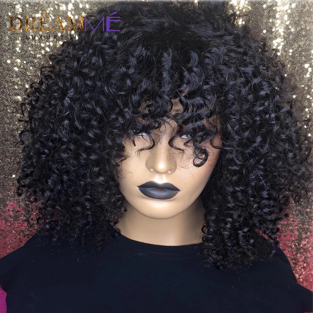 Кудрявые короткие парик из натуральных волос с челкой, не кружевные передние парики для черных женщин Remy preprucked с волосами младенца бразильские