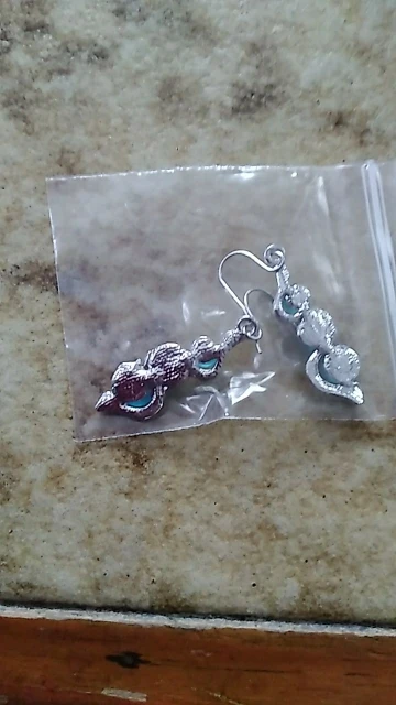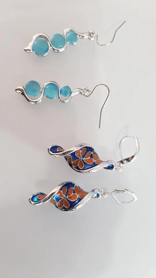 Заказала две пары серёг. Одна пара пришла зеркальная, другая рисунок в одну сторону. Ещё на одной серёжке глазок приклеен криво. Серьги симпатичные. Из одной пары сделаю подвеску. Комплекта не было. Впечатление на 4 .