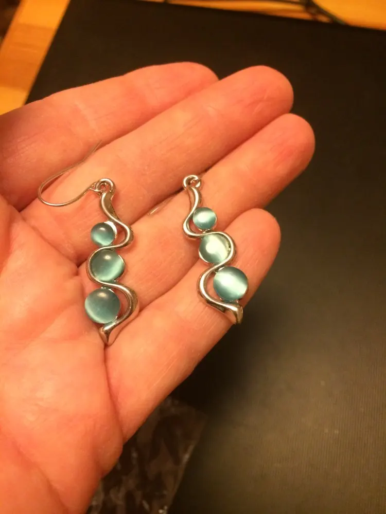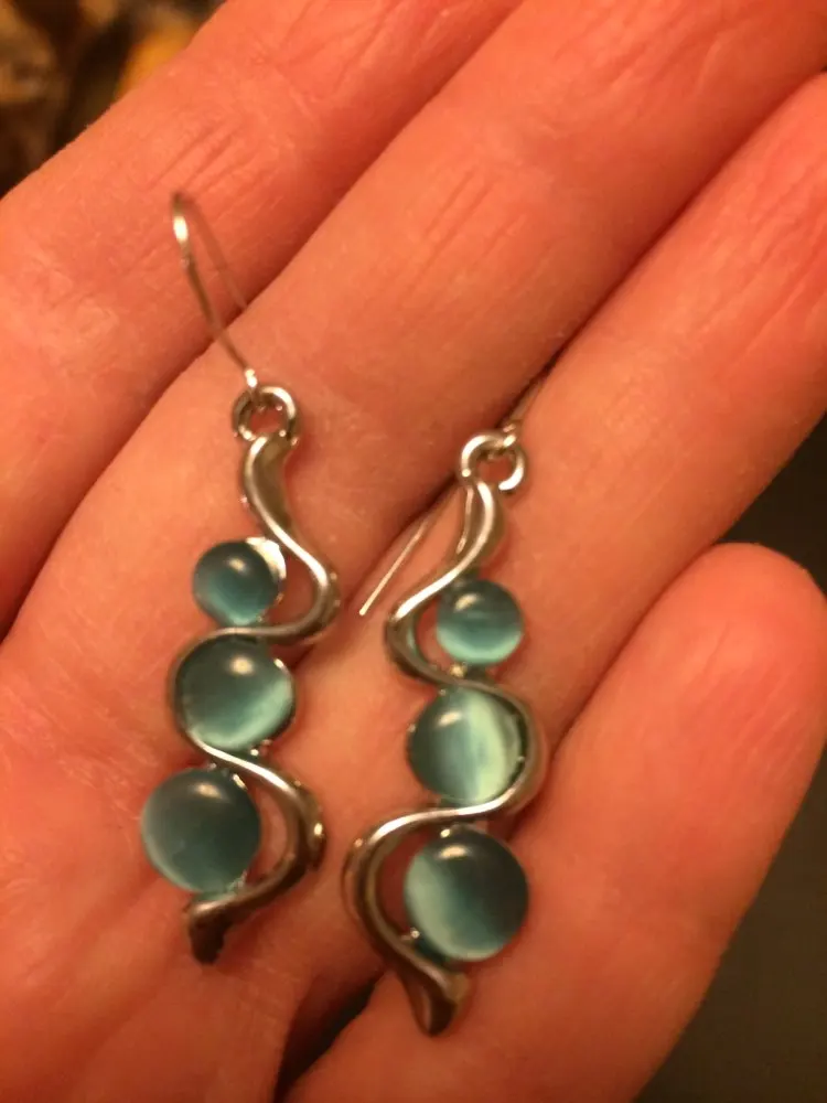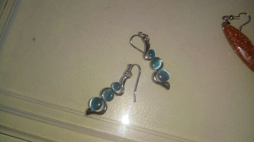 Серьги так себе, не очень похоже на образец. Нет таких переливов как на картинке. Больше похоже на мутный пластик, хотя сделаны аккуратно. Но, что вы хотите за такие деньги? Носить не буду