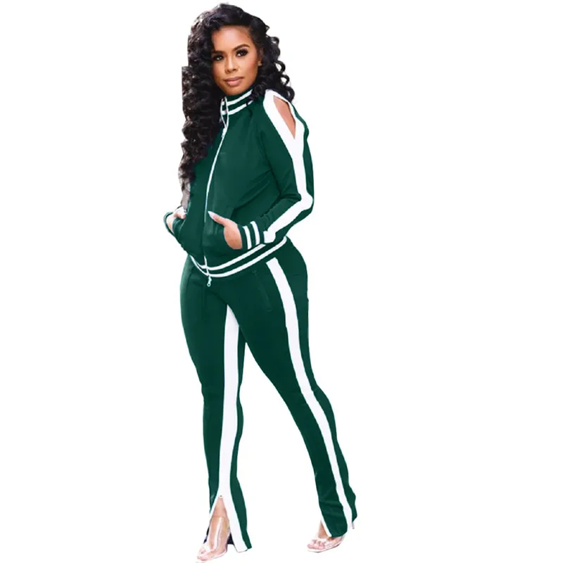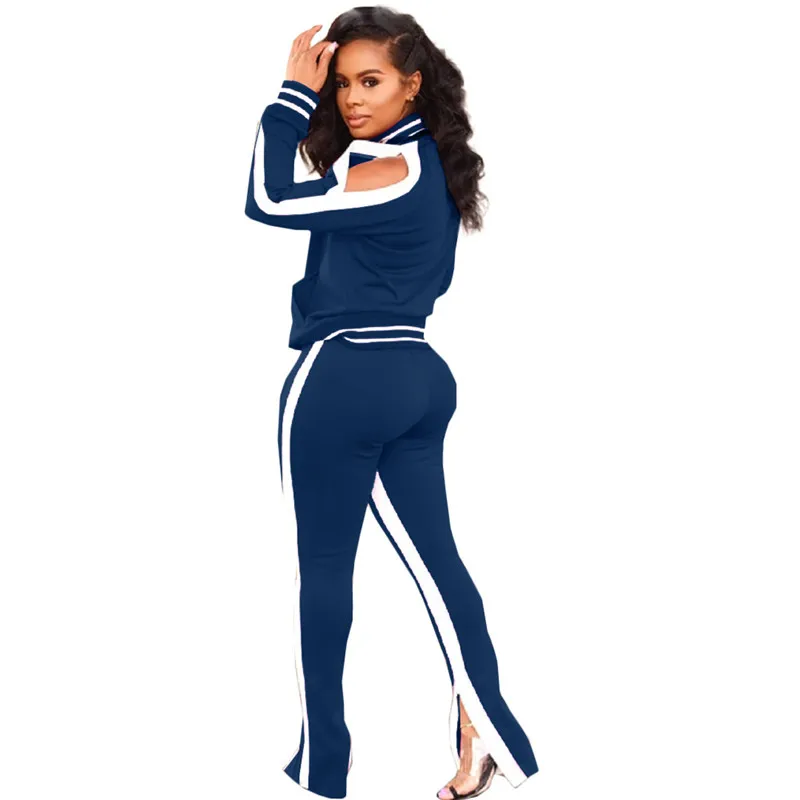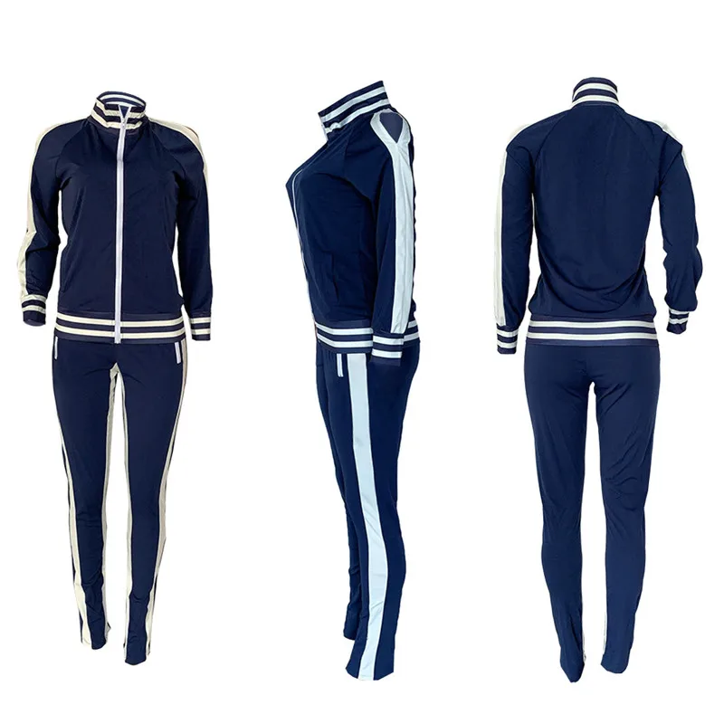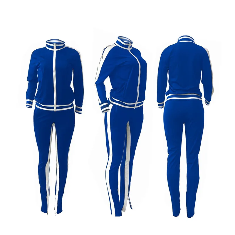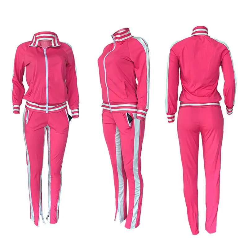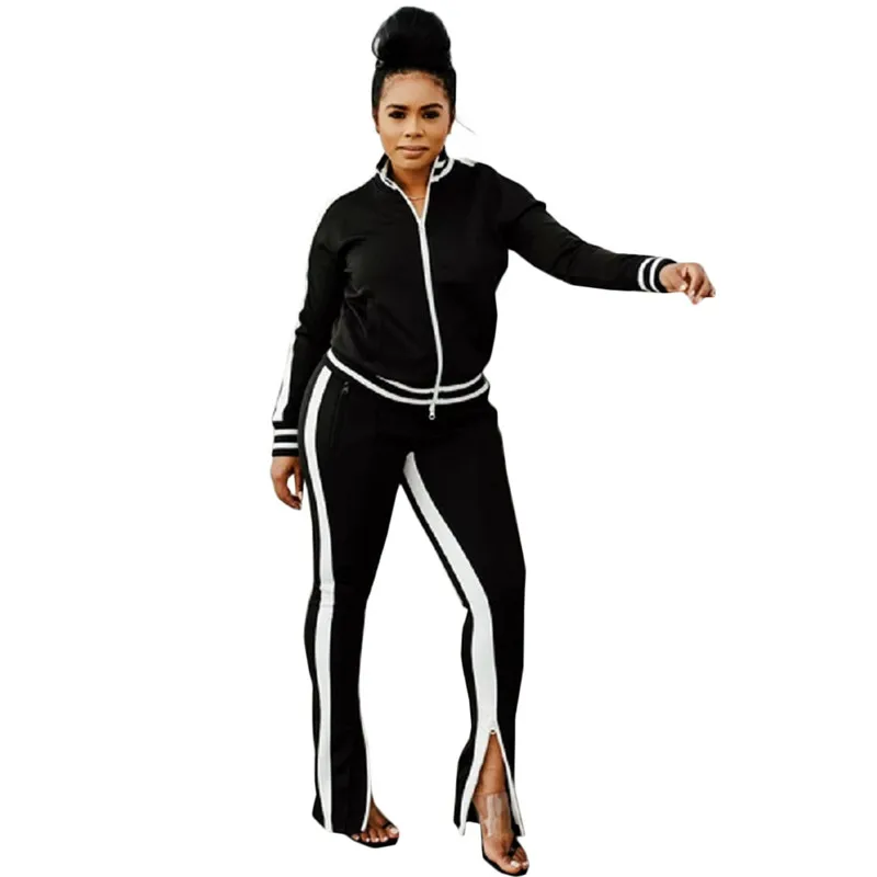 Спортивный костюм женский в белую полоску, с длинным рукавом и разрезом