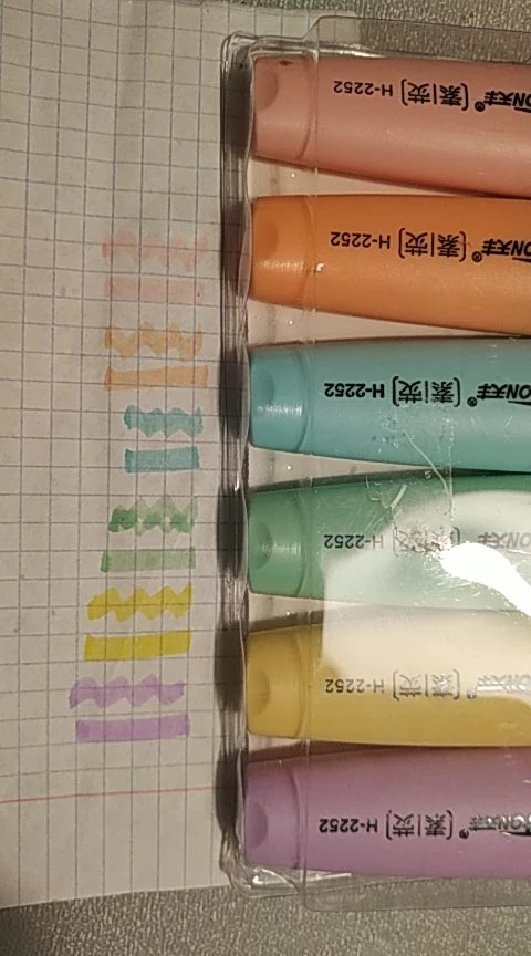Очень понравились, нежные цвета, хорошо заправлены, свежие. И, самое важное для текстовыделителей - не просвечивают с обратной стороны страницы. Рекомендую!