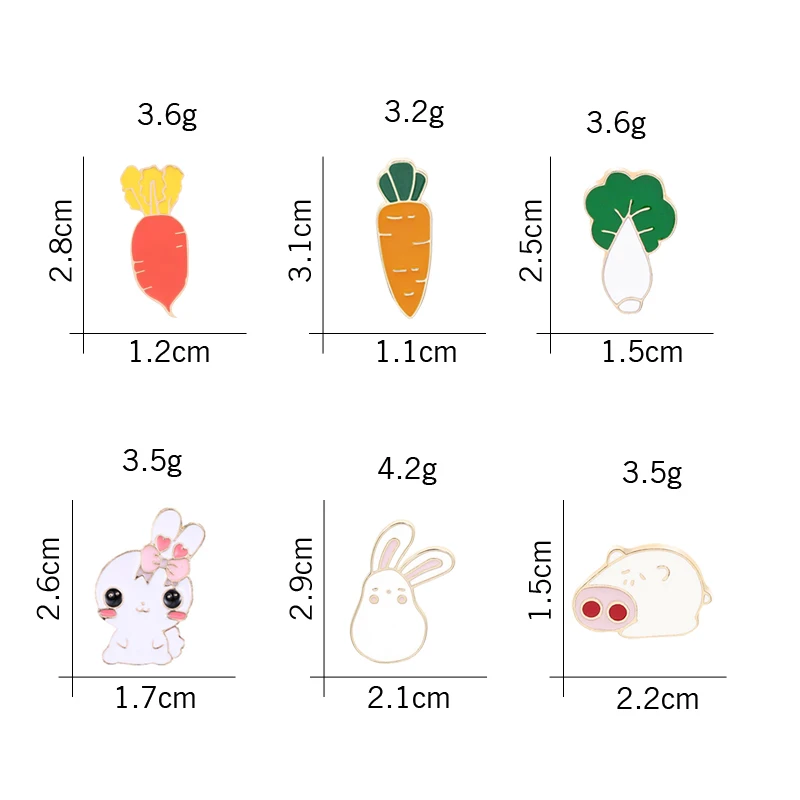 Эмалированные булавки в виде кролика, редиса, свиньи, кролик с морковкой, броши-капуста, для девочек, сумка со значком, для одежды, ювелирные украшения
