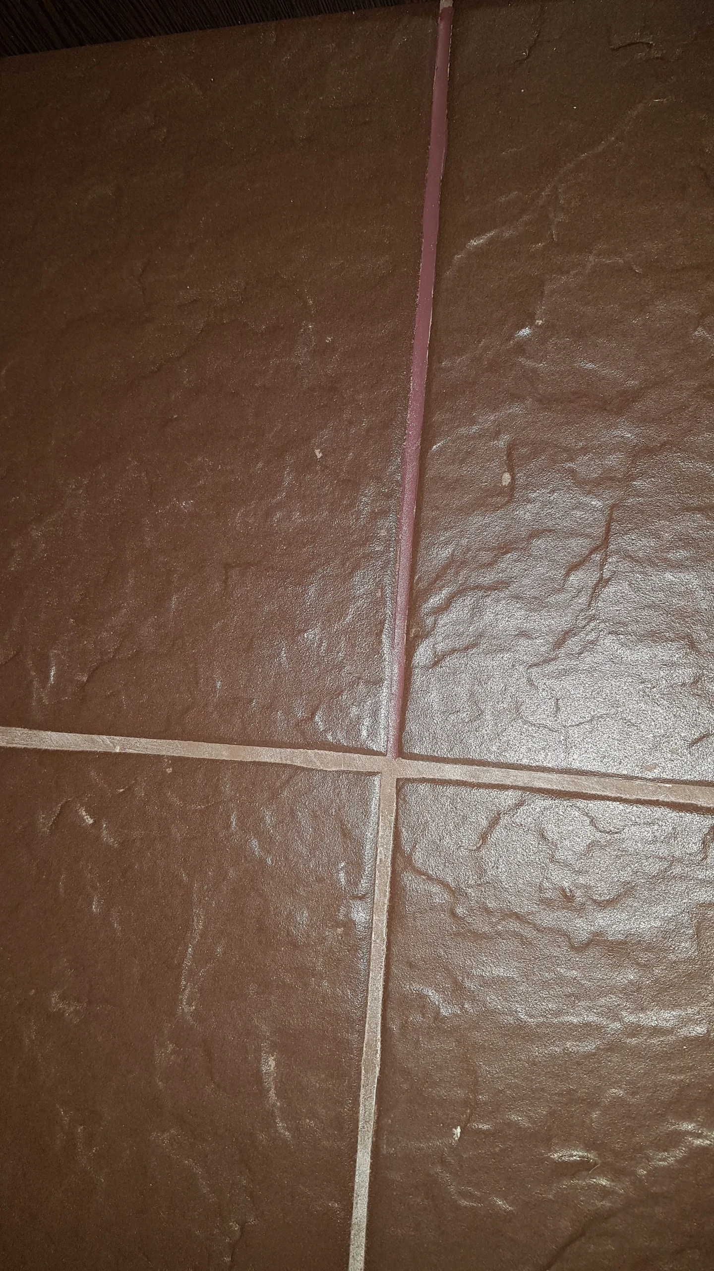 Коричневым хорошо закрашивает, примерно на 5 м2 плитки мне хватило и сколько то ещё осталось. К воде стойкий, спиртом моментально стирается.