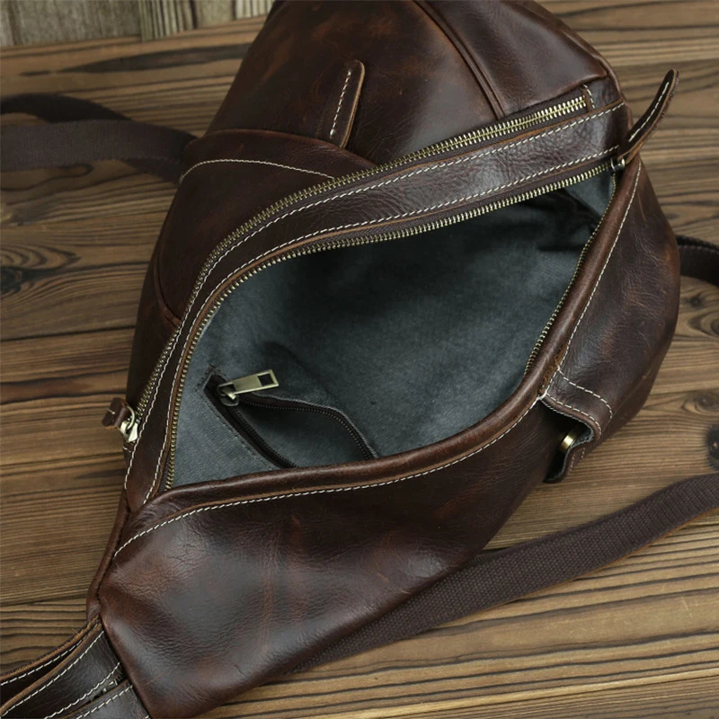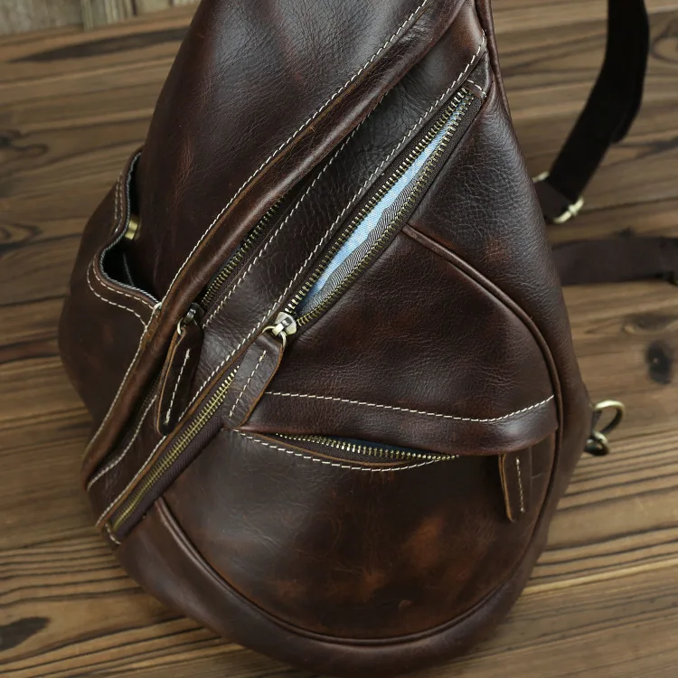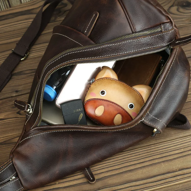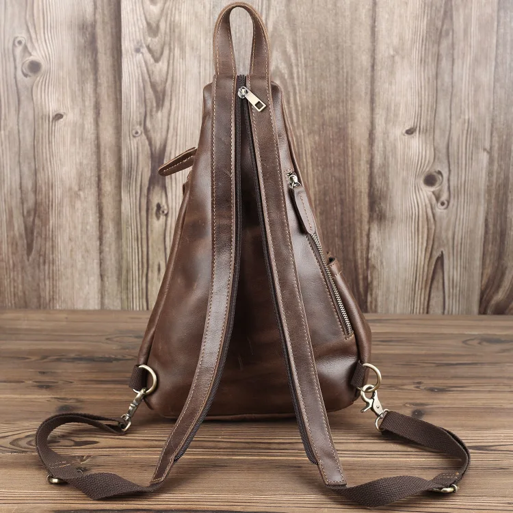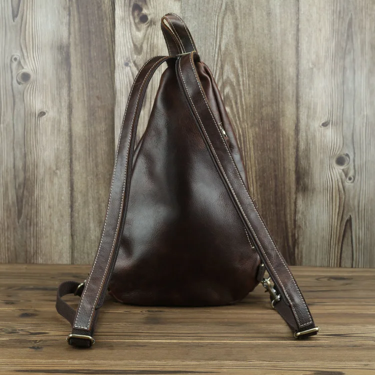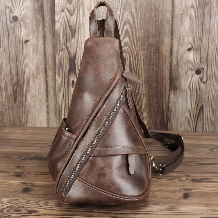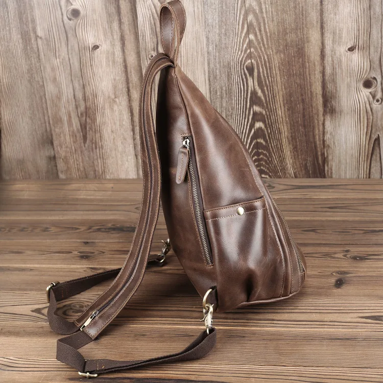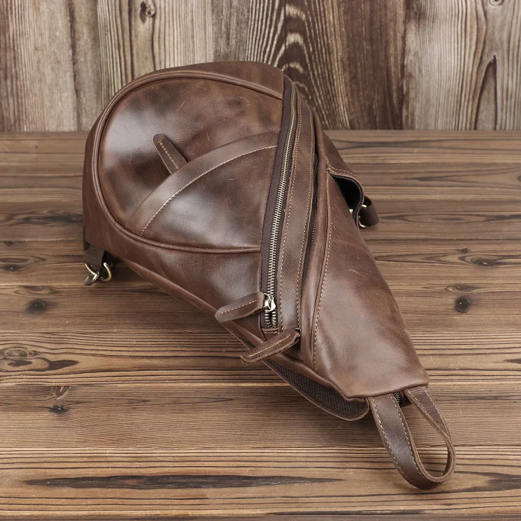 Нагрудной рюкзак из натуральной кожи для мужчин, уличный рюкзак на ...