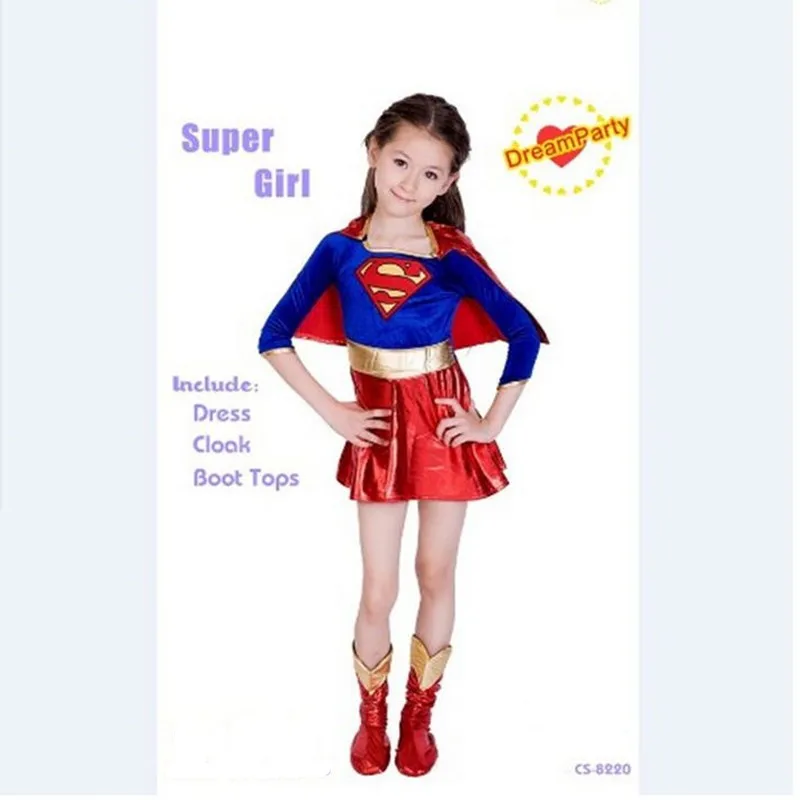 Детский костюм супердевочки для косплея на день рождения, карнавальвечерние ничное платье