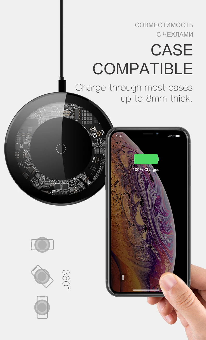Довольно хороший продукт. Очень чувствителен к толщине корпуса. С моим чехлом на телефоне не всегда заряжается. Необходимо положить его несколько раз перед запуском. Но в среднем хороший материал