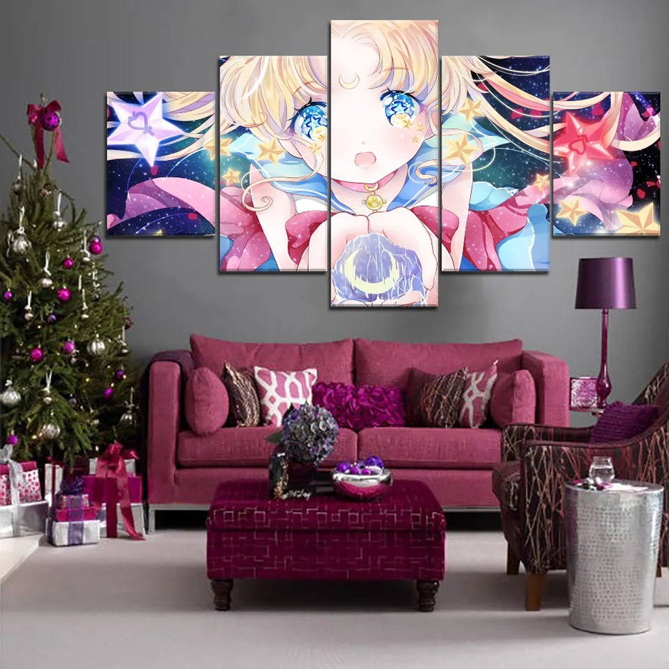 Картина на холсте, 5 шт., настенная живопись, фиолетовая аниме Ever...