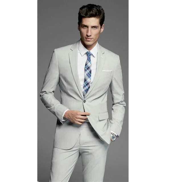 Красивый тонкий светильник серый мужские костюмы смокинг жениха пользовательские лацканы деловые случайные костюмы (куртка + брюки)
