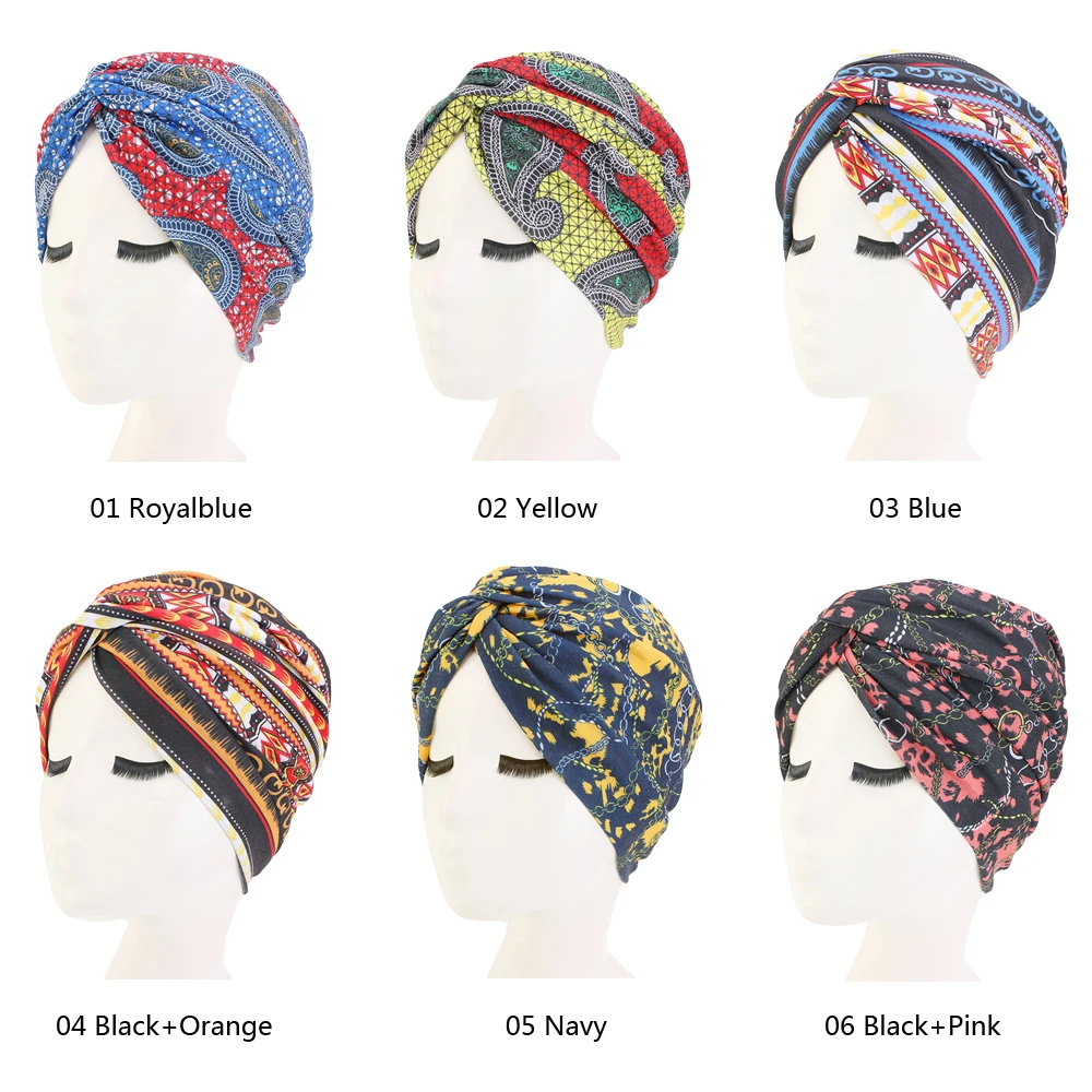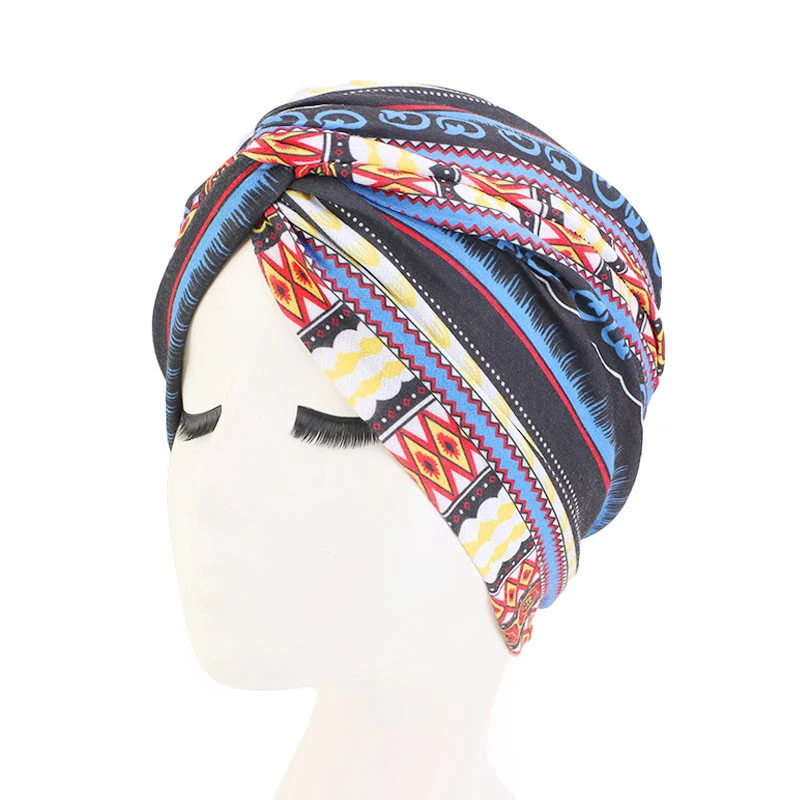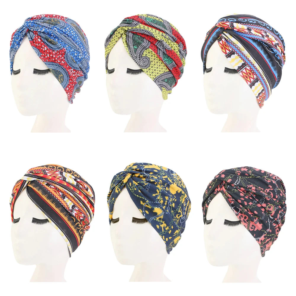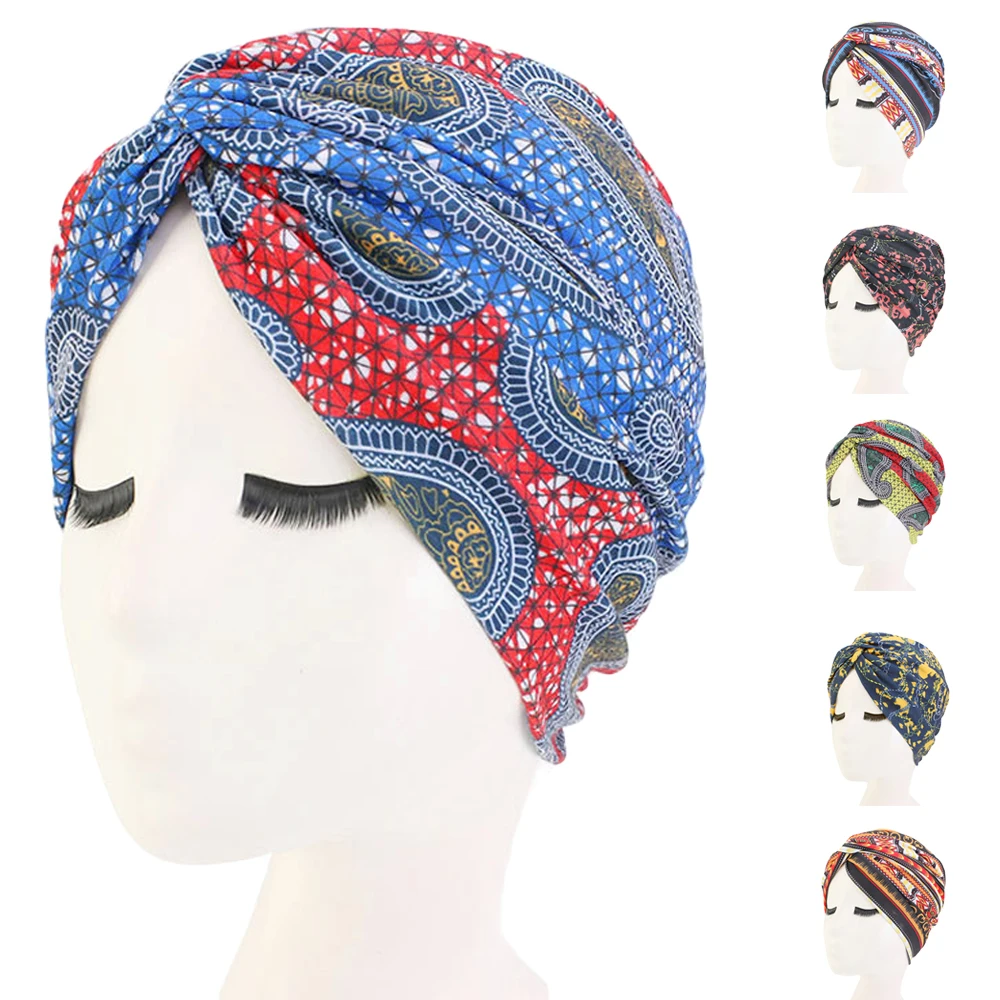 Шапка-тюрбан для волос с цветочным принтом, мусульманский головной ...