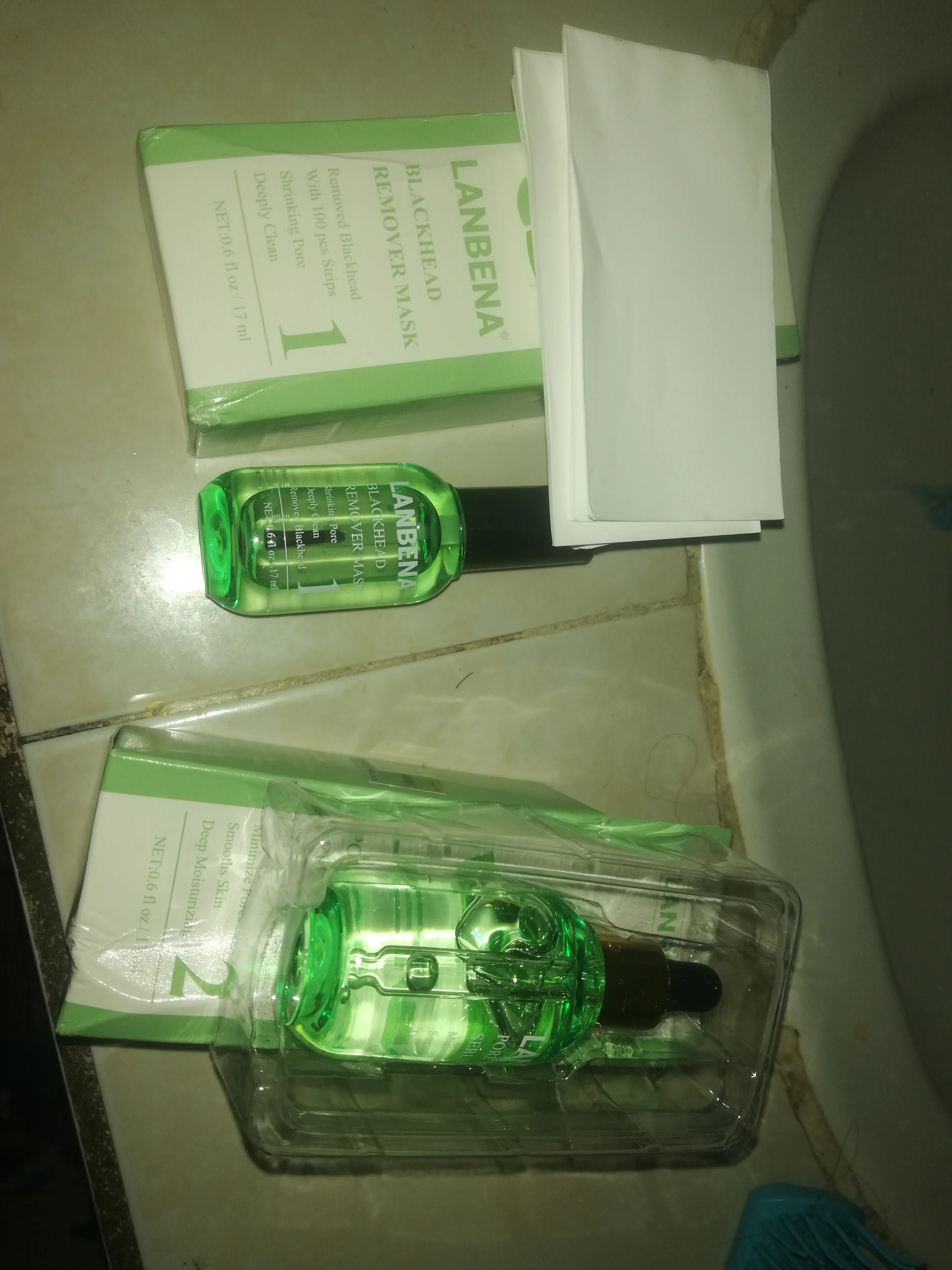 Заказ пришёл за 3 недели. Пробовала всего один раз, чёрные точки убирает. Продавца рекомендую. Думала бутылочки будут чуть больше.