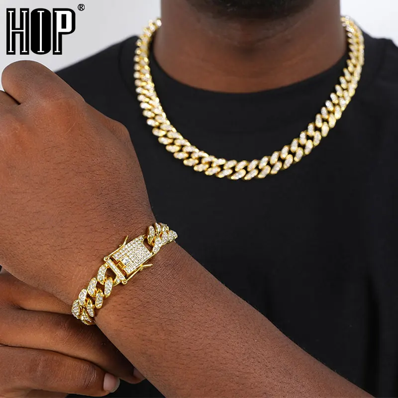 Цепочка мужская рэперская, 13 мм, с фианитами, в стиле хип-хоп, 1 комплект