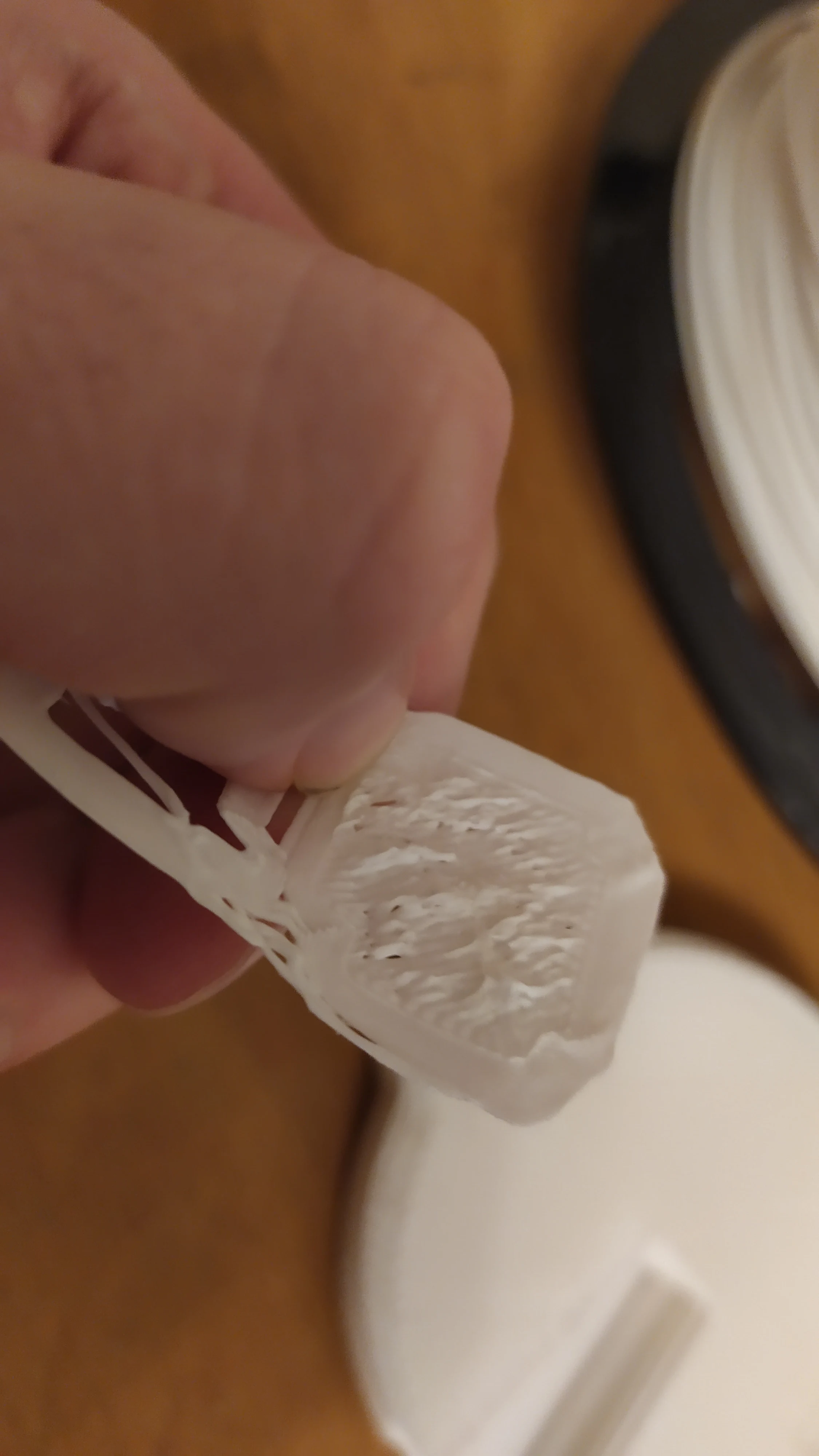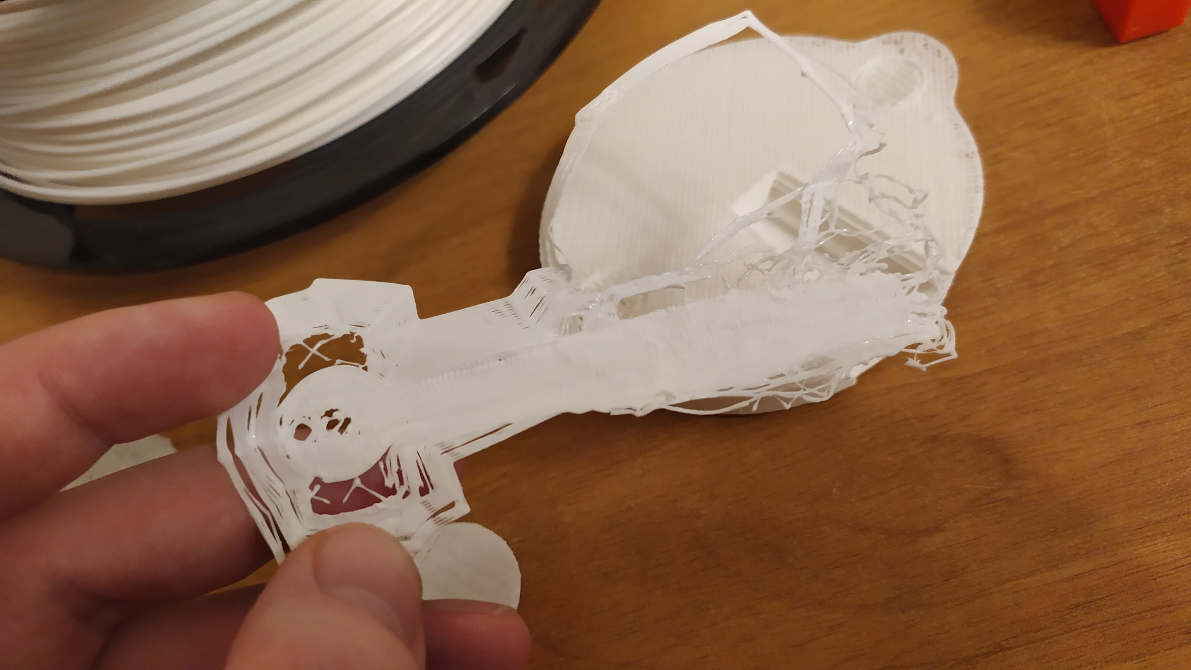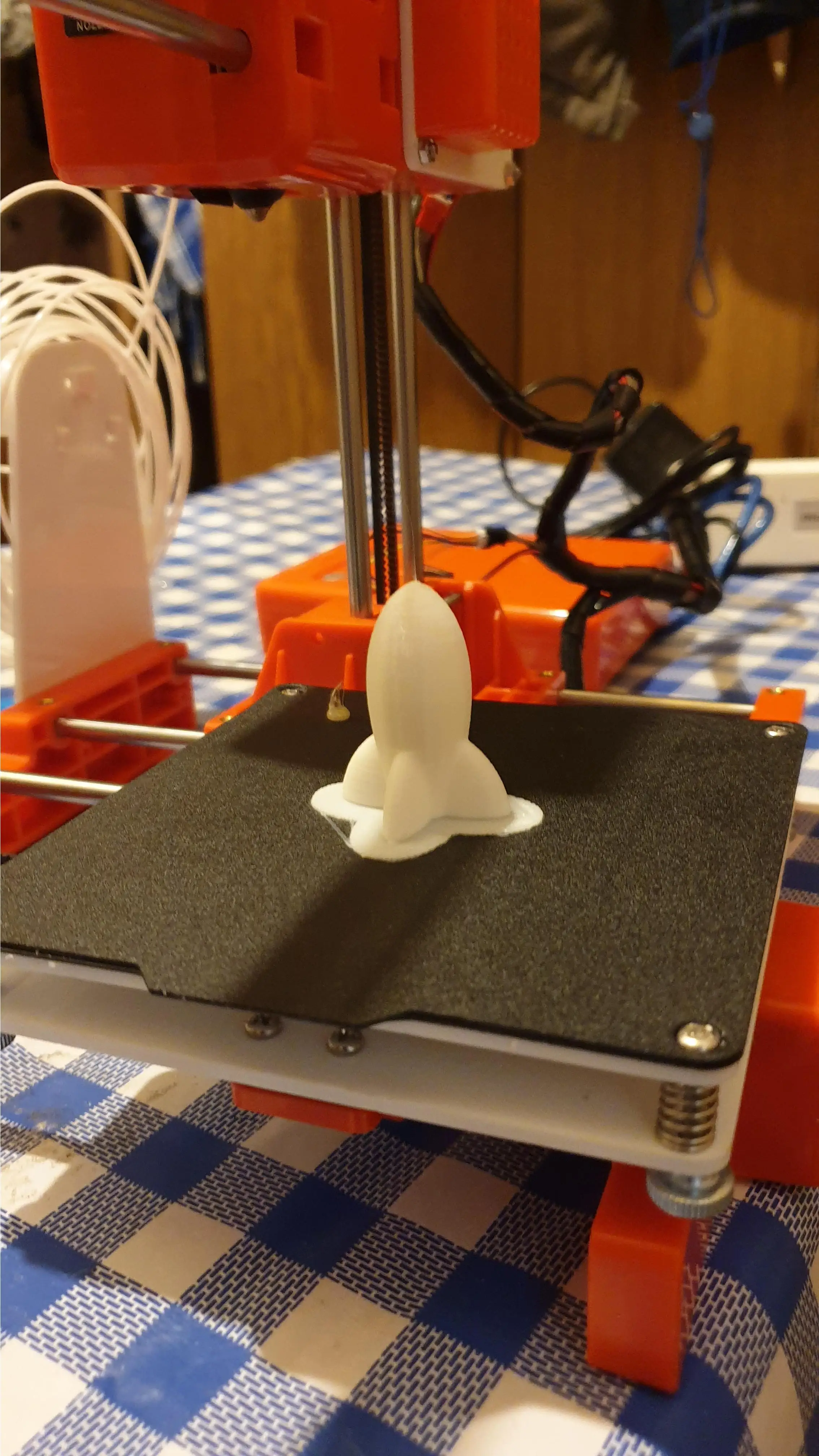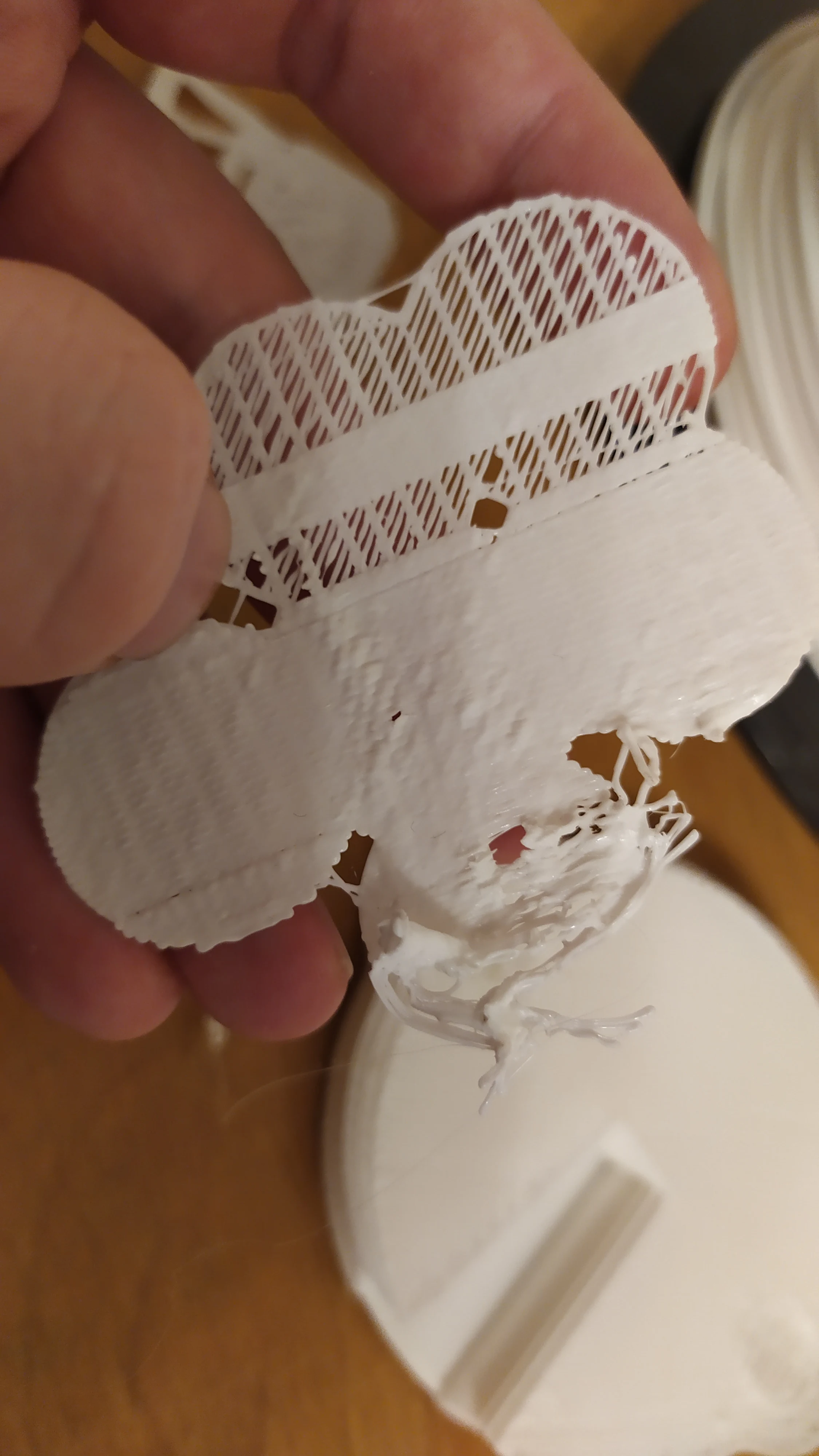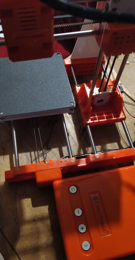 +Дешевый +Маленький -Плохой держатель для филамента. -Отвратительный стол для печати. -Громкий, хоть и маленький. Слышу его в наушниках, хотя стоит в другом углу комнаты. Стол при регулировании деформируется из за чего если вы нормально его настроете по углам - он у вас будет в прямом смысле слова ездить по слоту когда будет печатать в центре, если нормально отрегулировать по центру, то по углам получается слишком высоко и модель не прилипает (подробнее на фото). Описание фотографий: 1 - сам принтер в работе. 2 - отрегулировано по центру, модель отлипла. 3 - отрегулировано по краям, 4 и 5 та же ситуация, что и на 2-ом. Не прилипло из за большой высоты. Не знаю, возможно у меня бракованный стол.