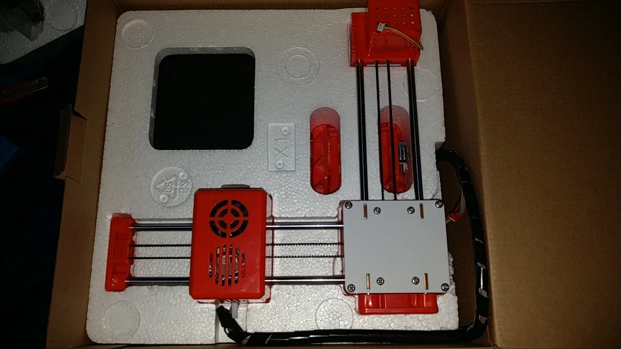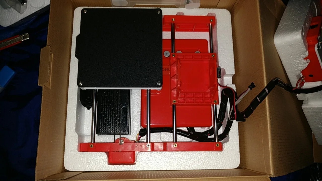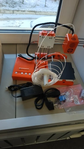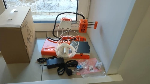 достал, собрал за пару минут, запустил. в целом, хороший принтер. уже около месяца работает без особых проблем. заметил только пару мелких недостатков: 1. защёлки на корпусе были сломаны. проблему решил самостоятельно. 2. слегка кривит ось Х по высоте, решаемо калибровкой стола. 3. при печати более 8 часов хотэнд перегревается и пластик закипает в среде. решаемо паузой на пару минут или заменой хотэнда. плюсы: цена, размер, не шумит. доступность в понимании, удобство использования, хорошее качество печати pla. рекомендую.