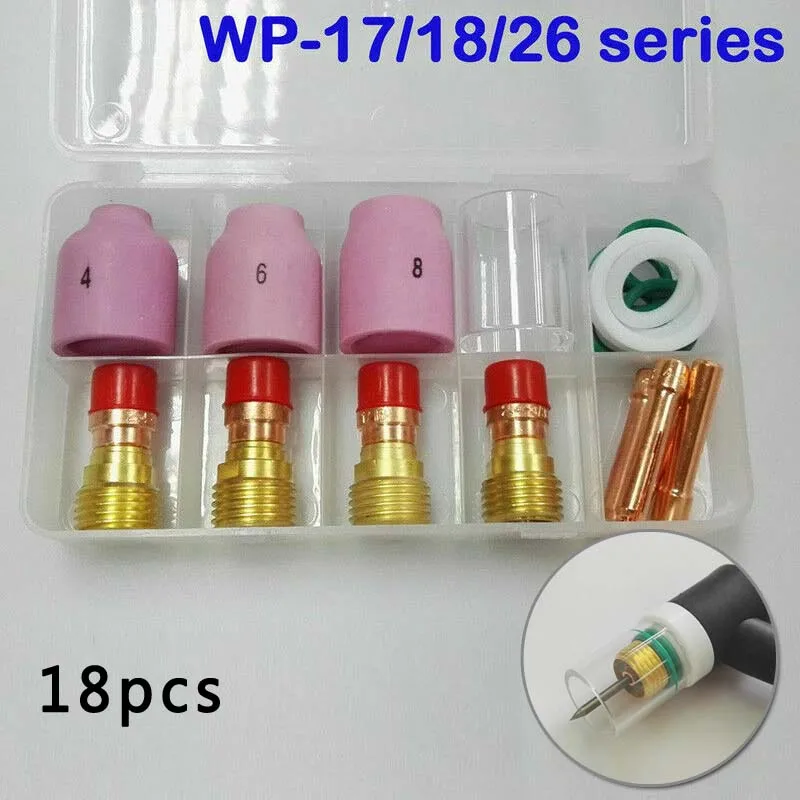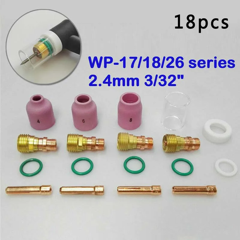 18 шт. TIG короткая газовая линза керамическая насадка + комплект тепловой чашки WP171826 2,4 мм 332 дюйма сварочные аксессуары tig сварочный газовый нагреватель