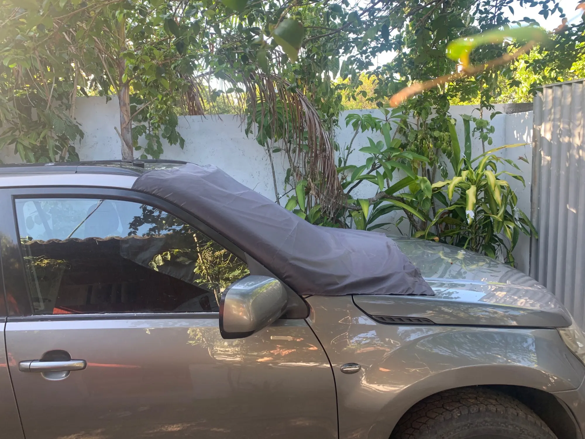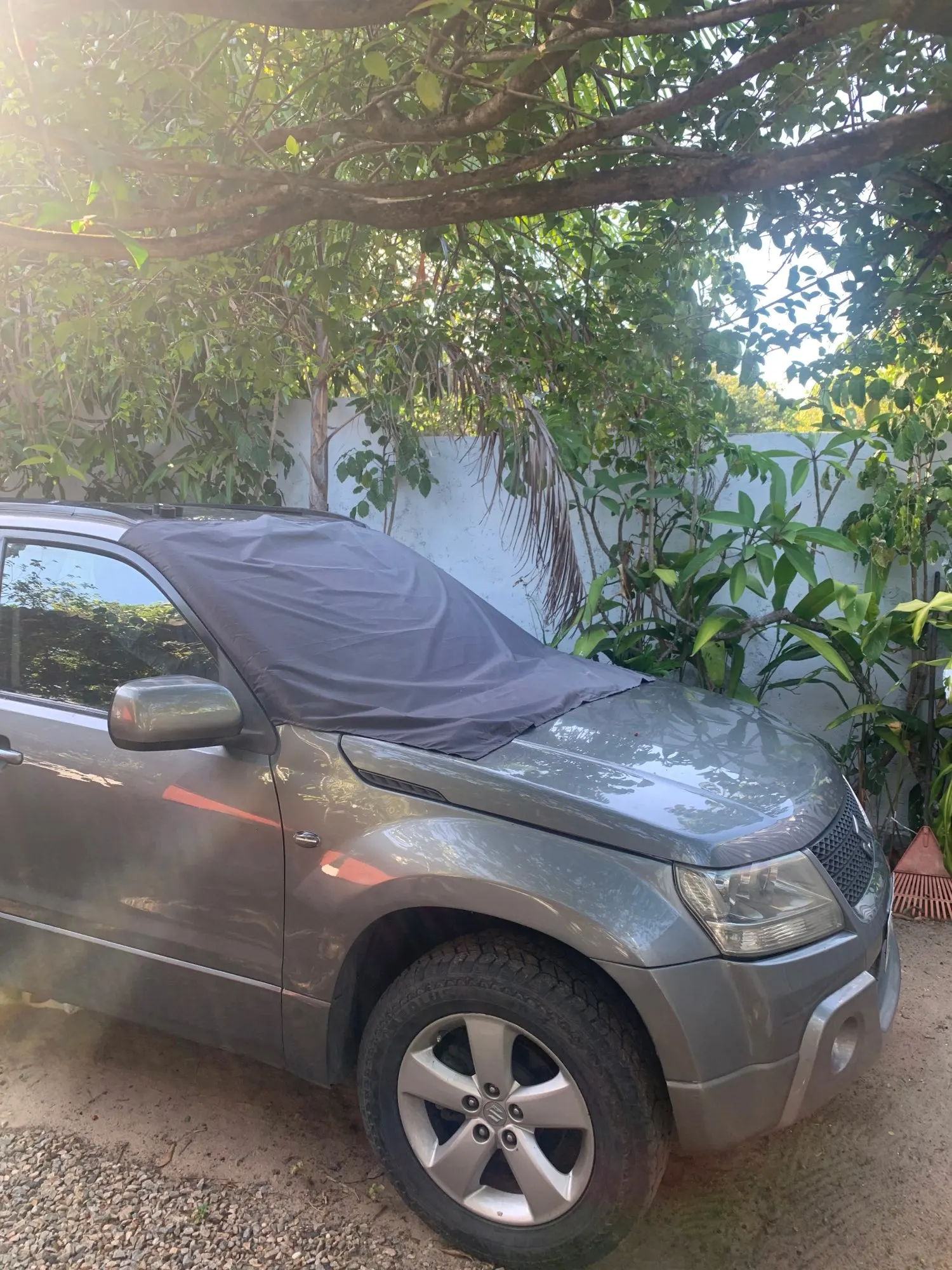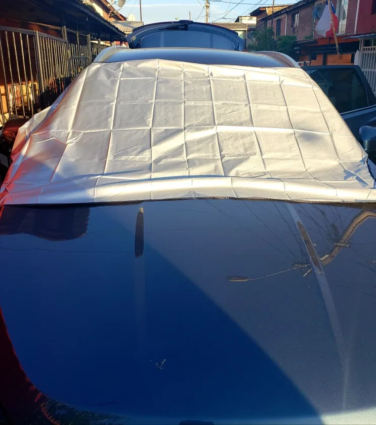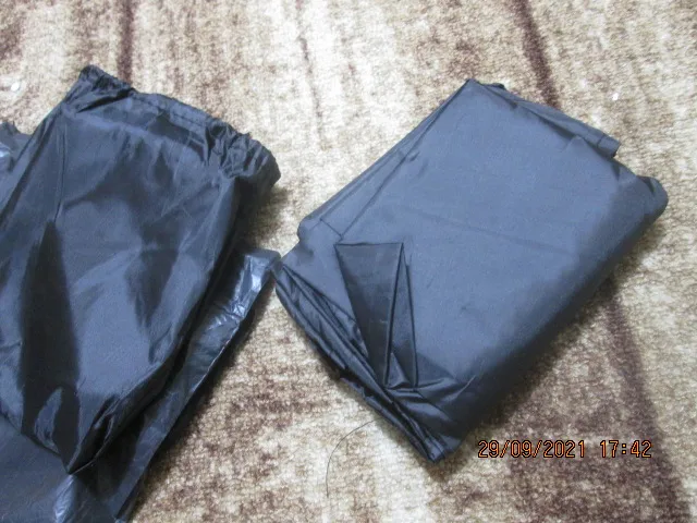 Брал на Фиат Альбеа. Закрывает полмашины: и на капот и на крышу с большим запасом и по бокам на двери тоже. Ради интереса примерили на Мерседес Спринтер (сами прикиньте разницу в размере лобовухи) - на него тоже почти подходит. А по качеству - ткань плащёвка. Одна сторона черная, другая серебристая.