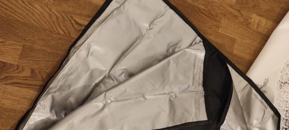 На вид качество не плохое, тонкая болонь с одной стороны светоотражающая в деле ещё не используется.