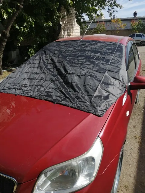 тент работает, летом в пекло ощутимо лучше и для торпеды безопасен. материал как у зонта. лёгкий, прочный, большой. края прижимал дверьми, были в салоне. к магнитам скептически отношусь.